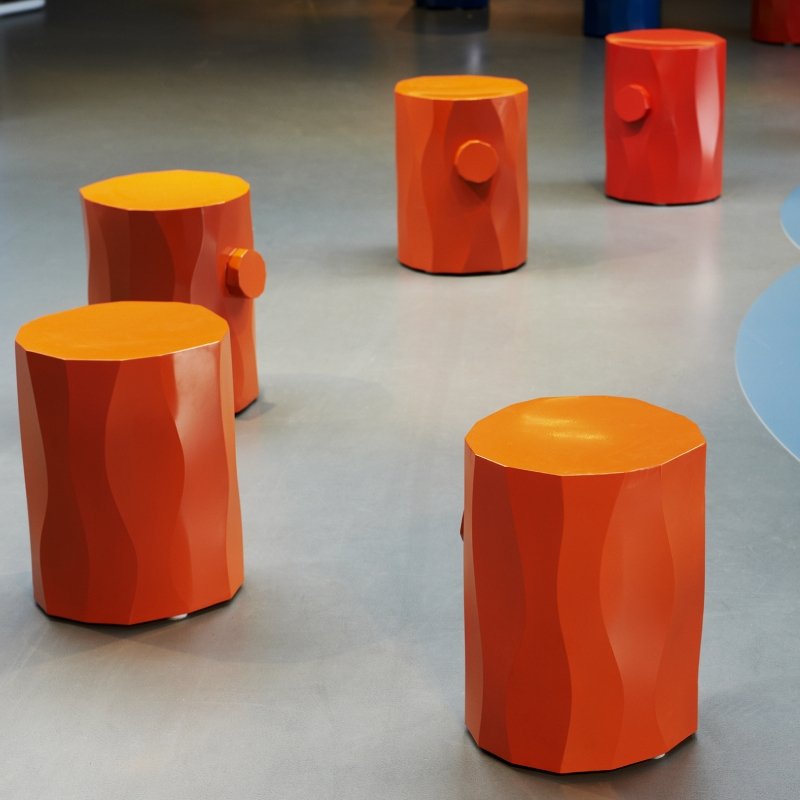 Dit metalen krukje heeft de vorm van een boomstam, door metalen platen te slijpen en te vouwen ontstaan golvende lijnen. Buig het in de juiste vorm en Tree Trunk wordt zichtbaar. Door het creatieve ontwerp past de Tree Trunk op kantoor, scholen of in de wachtkamer.