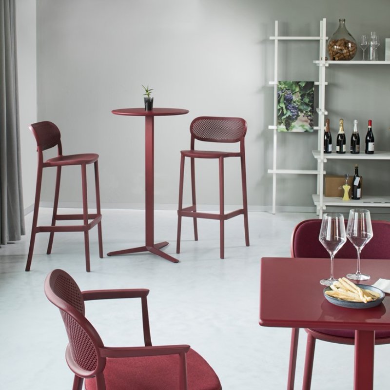 De buitenkruk is gemaakt van kunststof technopolymeer waar rekening mee gehouden wordt met het bieden van maximaal zitcomfort. De design kruk is stapelbaar tot 6 stuks, is voorzien van een voetensteun en verkrijgbaar in diverse kleuren.