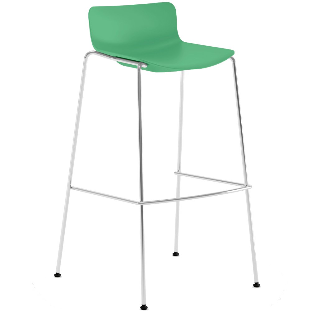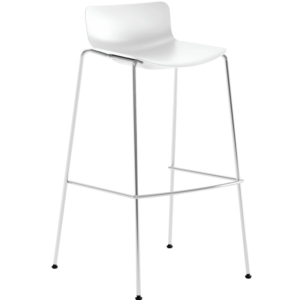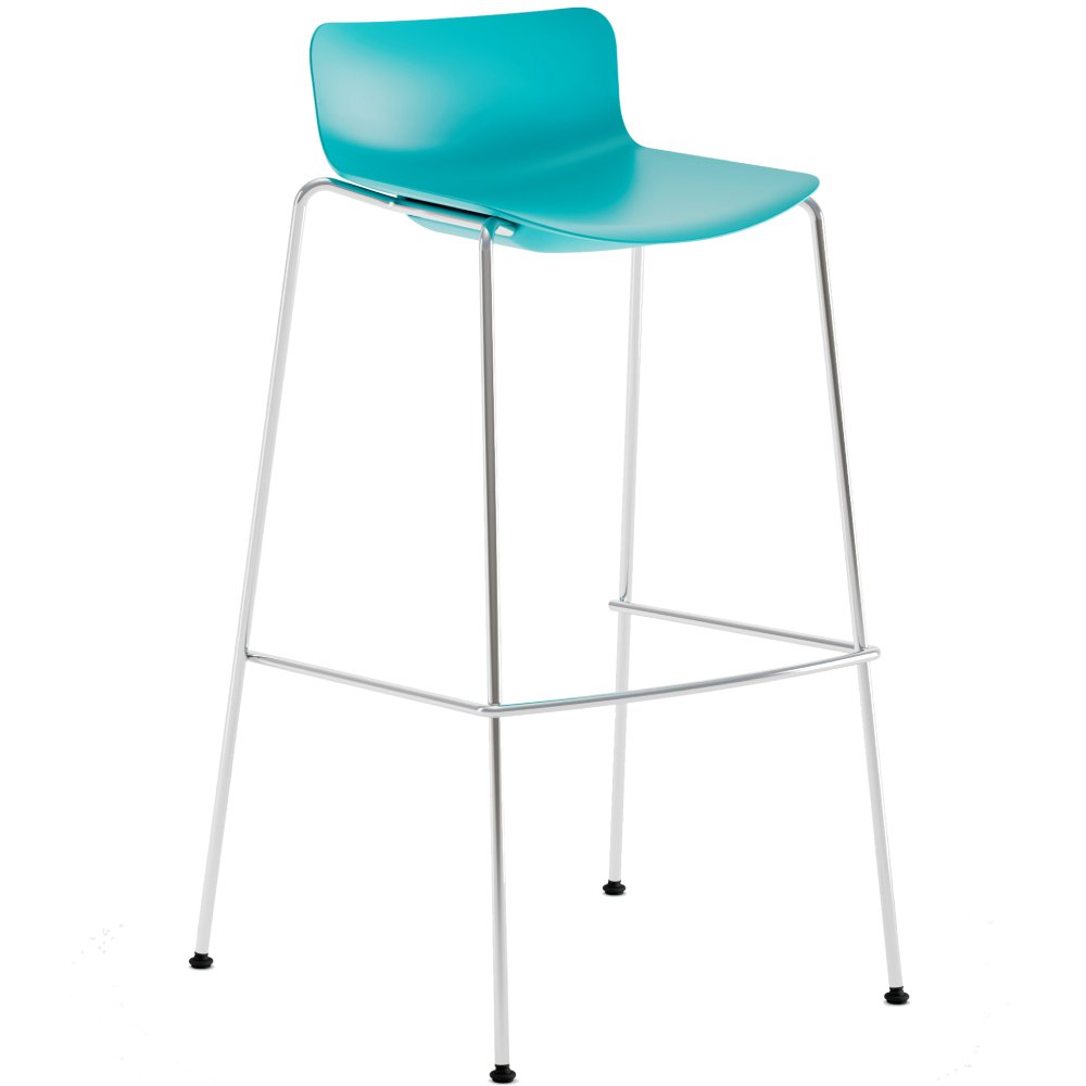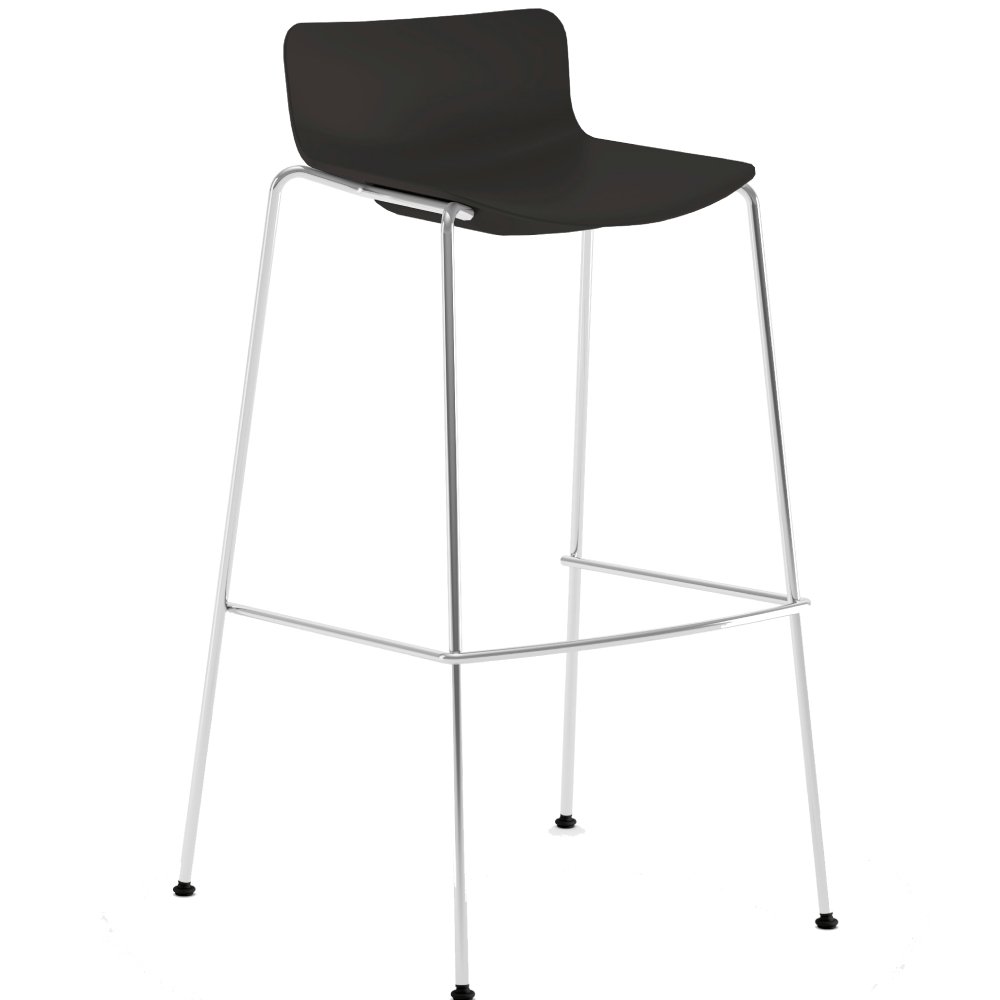 Kunststof barkruk Peyo is een stevige kruk met lage rugleuning en een vloeiend ontwerp waarbij eenvoud en speelsheid een kenmerkende rol hebben gespeeld tijdens het ontwerpproces. De hoge kruk heeft een kunststof zitschaal met een metalen 4-poots frame in chroom, voorzien van een voetensteun.