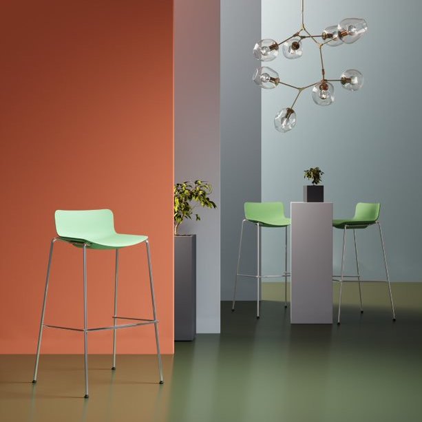 Combineer de kruk met een hoge bartafel of hoge vergadertafel en biedt medewerkers een comfortabele hoge zitting in de kantine of tijdens vergaderingen. Door de simplistische vormen kunt u de kruk eenvoudig met andere meubels combineren.