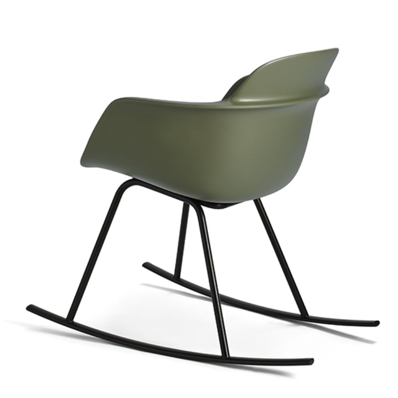 Kunststof schommelstoel Sicla, een comfortabele kantinestoel met een polypropyleen kunststof zitschaal en een schommel onderstel van metaal.