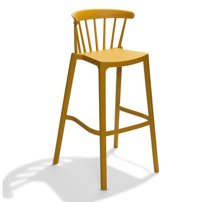 Kunststof spijlen barkruk heeft een vintage ontwerp met zijn opvallende rugleuning. De kunststof hoge kruk is van stevig polypropyleen in een klassiek jasje. De zitmeubel is mogelijk in diverse frisse kleuren die uw interieur opfleuren.