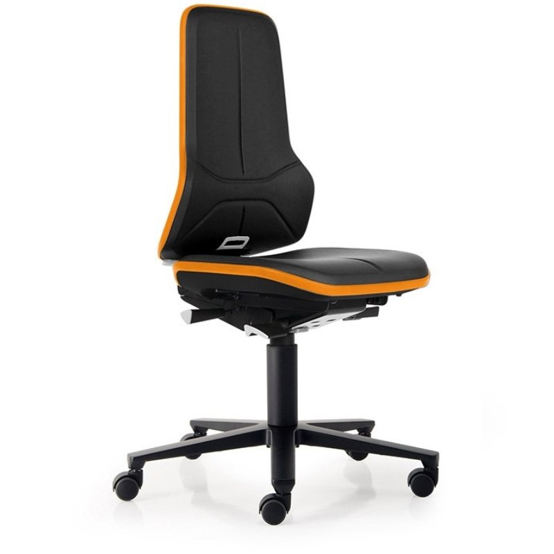 U kunt de werkstoel met wielen of glijders kiezen. De Bimos industriestoel is mogelijk met permanentcontact rugleuning waarbij deze naar voren of achteren kan kantelen. Of u kiest voor synchroontechniek, waarbij de rugleuning kantelt met daarbij een op afgestemde beweging van de zitting.