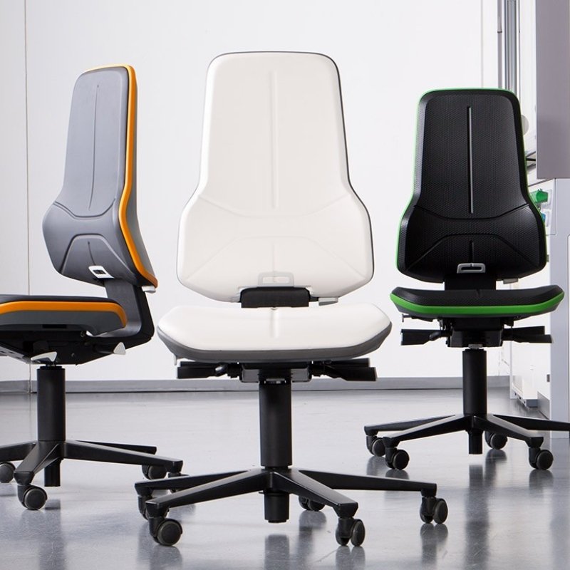Laboratoriumstoel Neon is een ergonomische stoel. Deze stoel combineert voortreffelijke ergonomie met uitzonderlijk zitcomfort. Dit model heeft alle instelmogelijkheden van een bureaustoel en is gemaakt volgens een eigen Hygienic Design.