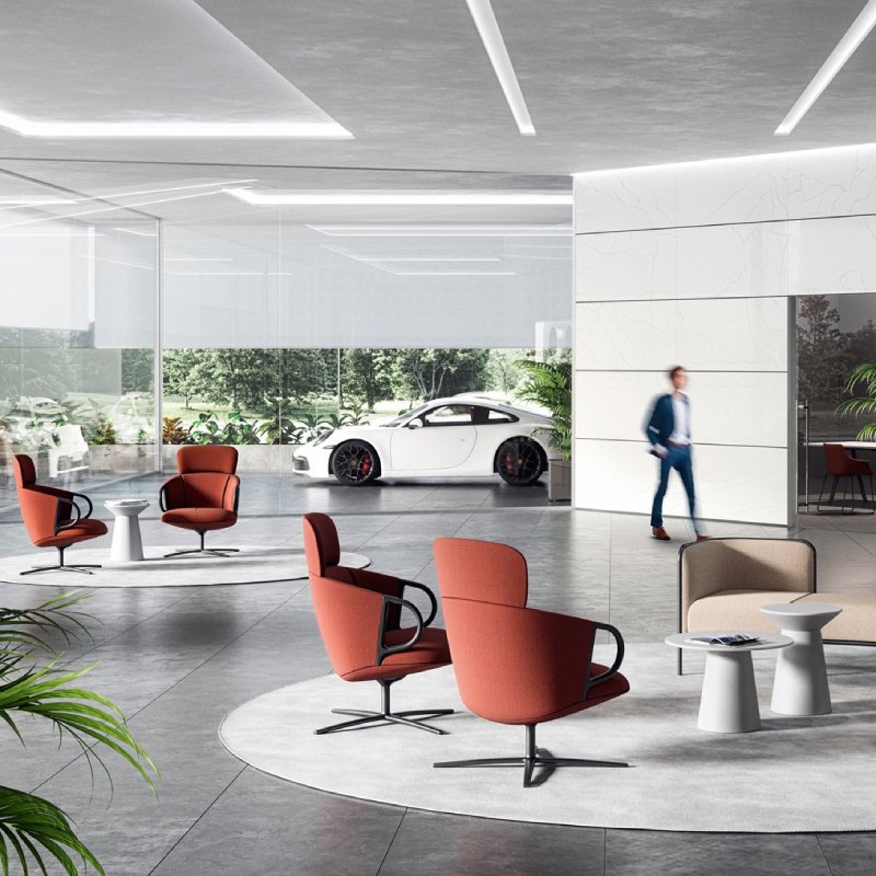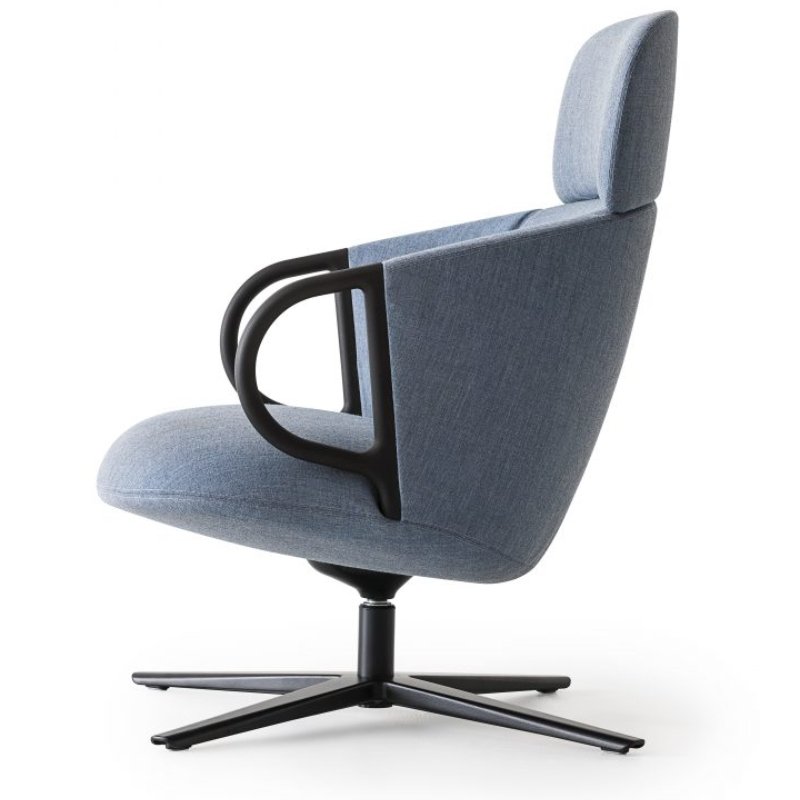 Loungefauteuil Rumba High is een comfortabel en volledig gestoffeerde stoel. De loungestoel heeft een 4 dimensionaal swivelframe met zachte kunststof armleggers. Deze design loungestoel is uitstekend voor in ontvangstruimtes maar ook in loungeruimtes of directiekamers. Door de lijnen en de zeer prettige zitting is Rumba Low een welkome aanvulling in vele interieurs.