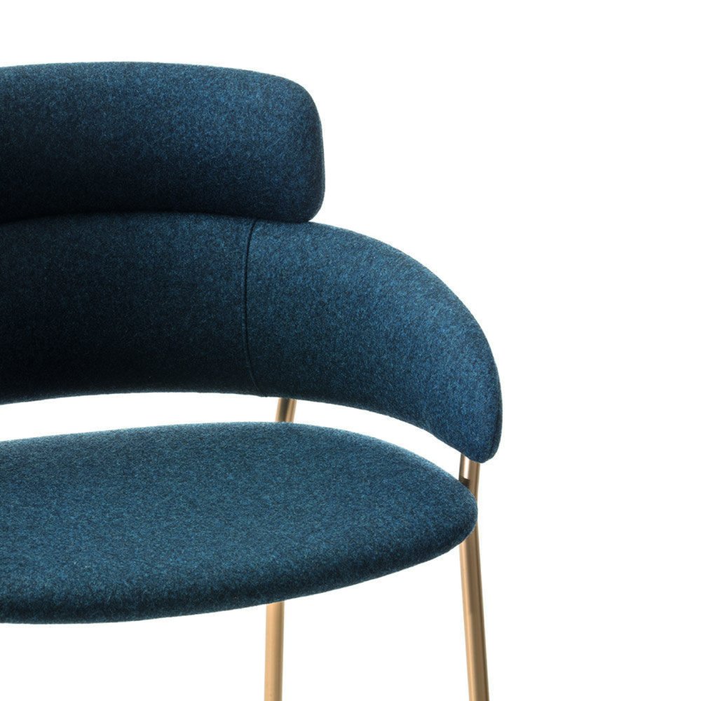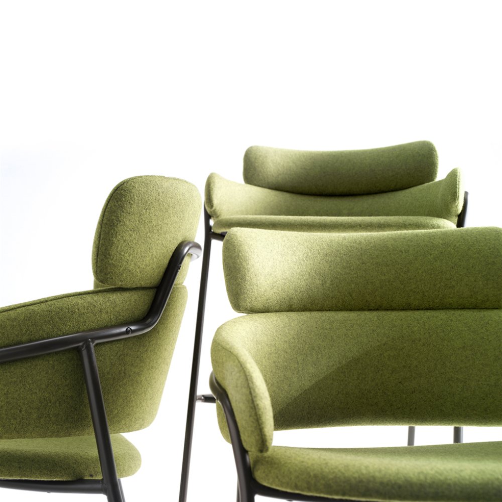 Deze luxe design fauteuil met armleggers wordt gekenmerkt door de zachte en comfortabele vorm. Het frame is gemaakt van stevige gebogen stalen buizen.
