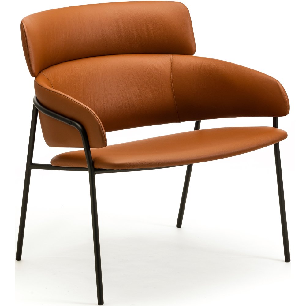 Loungestoel Strike, een moderne loungestoel met een uniek design. De stoel is volledig gestoffeerd en heeft een comfortabele en brede zitting.