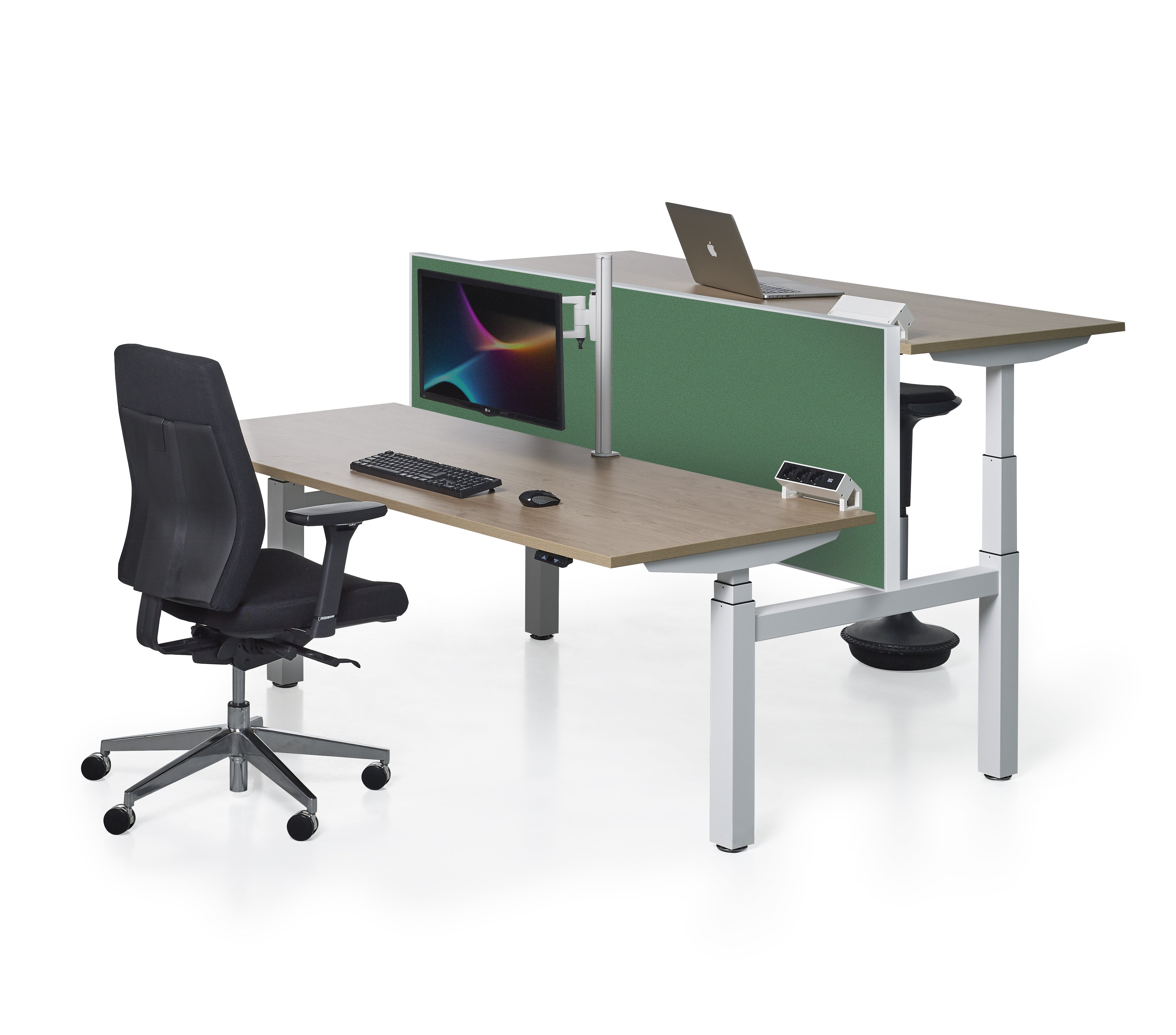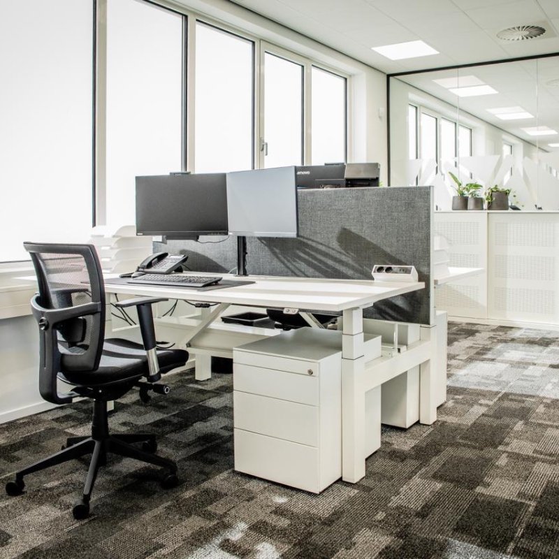 Matrix elektrisch duo zit-sta bureau is een betrouwbaar zit-sta bureau voor de dynamische werkplek. Het is een ergonomisch alternatief dat de typische bureau klachten voorkomt, doordat er afwisseling mogelijk is tussen zitten en staan. Voor meer privacy is Matrix Duo zit-sta bureau leverbaar met een gestoffeerd scheidingspaneel, dat tussen de twee bureaus in geplaats kan worden. Bel ons mail ons gerust als u interesse heeft!