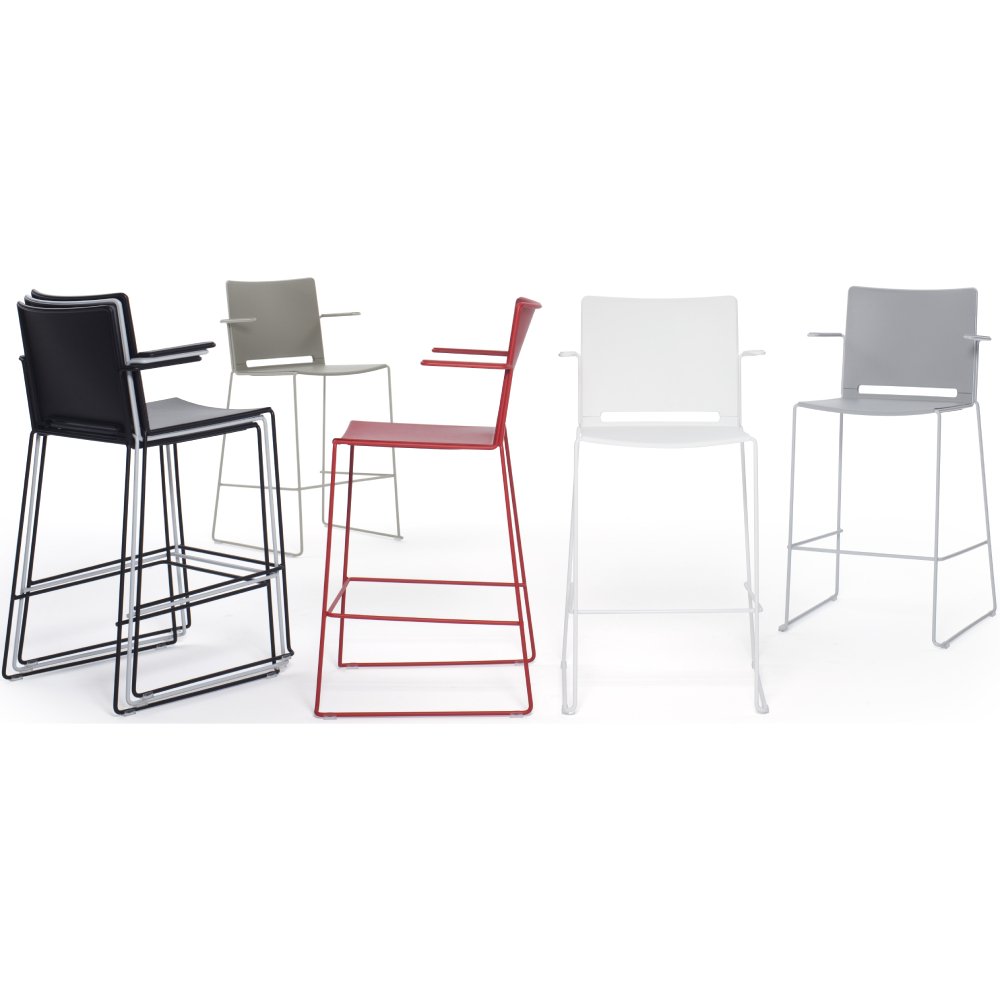 Voor extra comfort is opdekstoffering mogelijk en is het ook mogelijk om armleggers aan de barkruk toe te voegen.