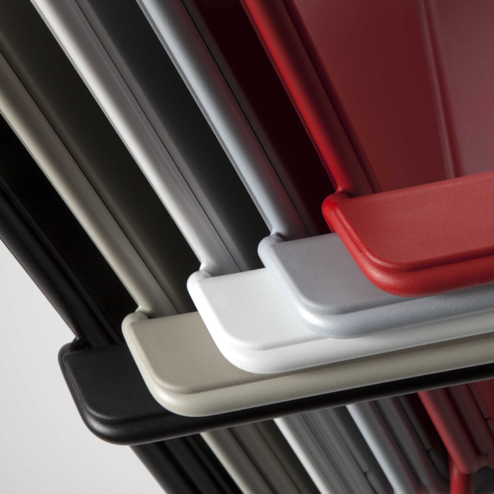 De zitting en rug is van glasvezel versterkt polypropyleen kunststof, leverbaar in diverse kleuren en is ook nog eens UV bestendig en 100% recyclebaar.