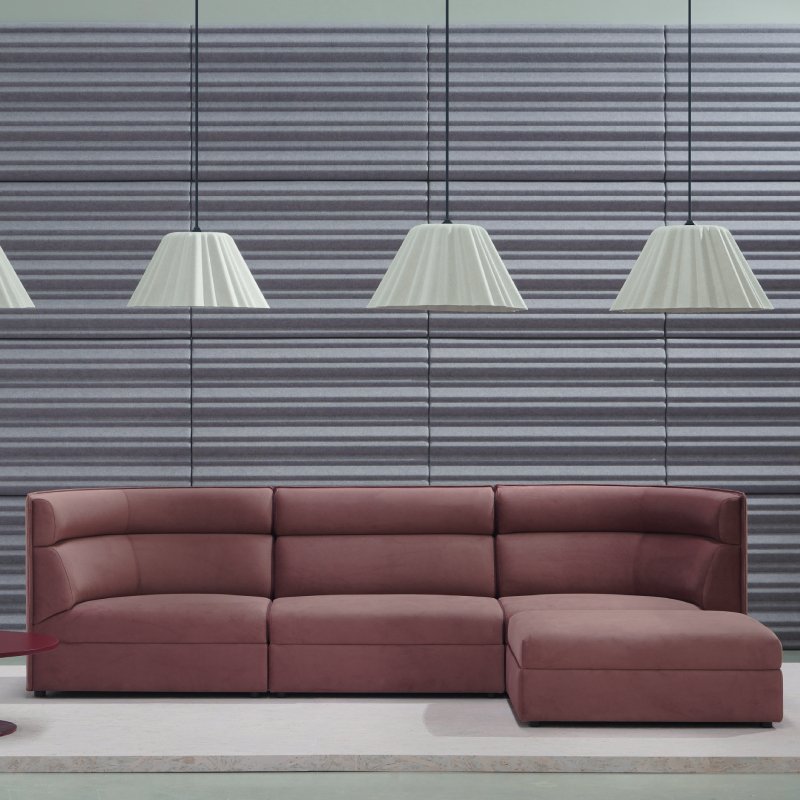 De loungebank is mogelijk in diverse stofferingen en kleuren.