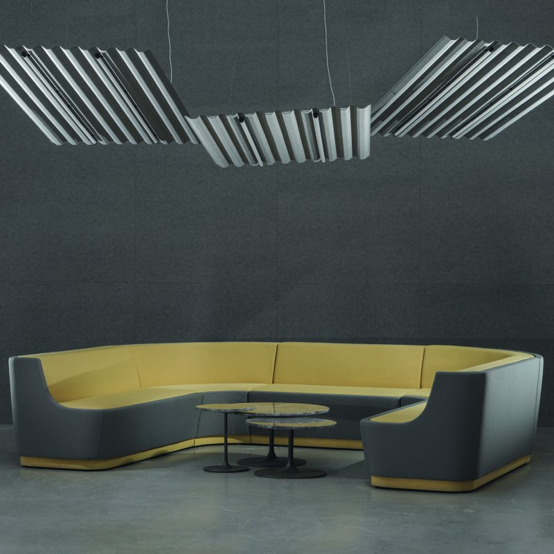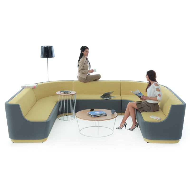 Bank Huggi is een modulaire hoekbank met comfortabele zitelementen. De bank past goed in de ontvangstruimte, loungeruimte of open kantoorruimtes.