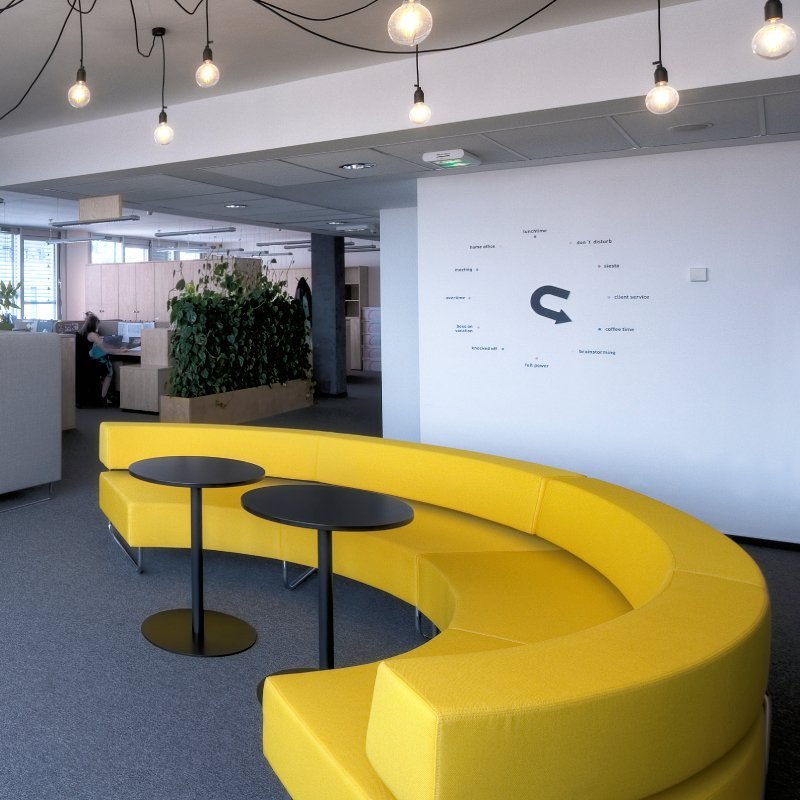 Gebogen bank Loca is een comfortabel bankstel met ronde vormen. Loca is ontworpen om te plaatsen in grote ruimtes waar modulaire oplossingen gewenst zijn met een 'lichte' uitstraling en een vloeiend design.