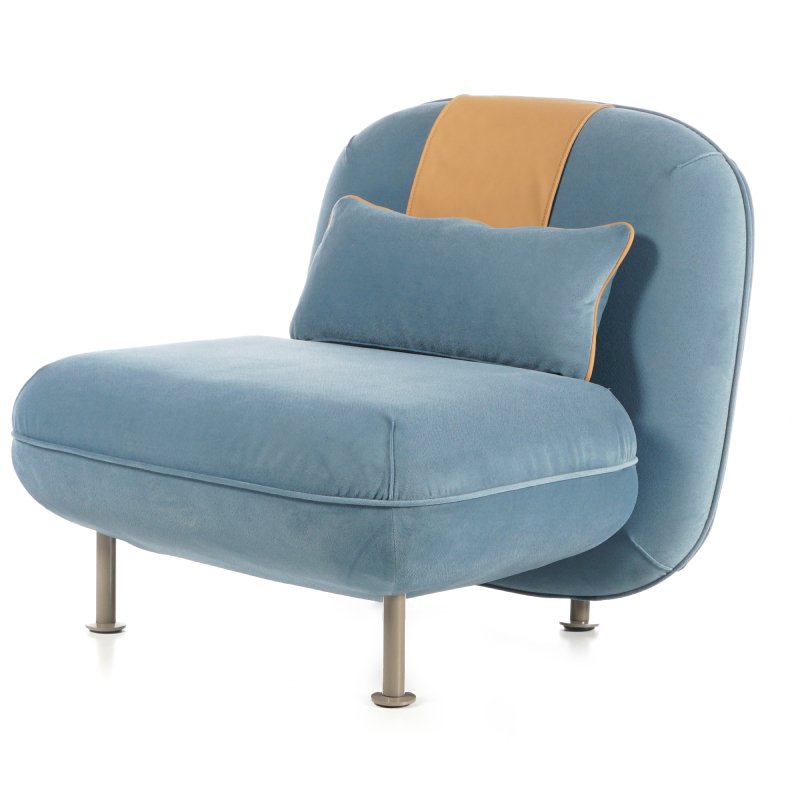 Het bankstel is mogelijk in diverse stofferingen en kleuren. Het is ook mogelijk om het kussen in een afwijkende kleur te kiezen dan de zitting.