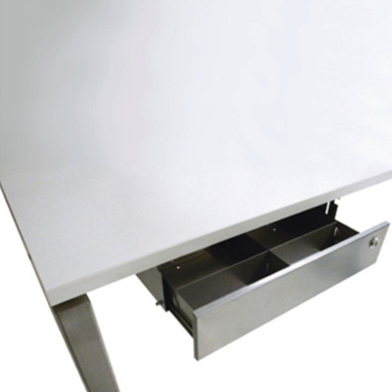 De pennenlade is voorzien van een uitneembare vakindeling en slot. De bureaulade is mogelijk in diverse kleuren. Liever geen rommeltjes op uw bureaublad op het kantoor of op uw thuiswerkplek? Met de lade onder het bureau blijft uw werkruimte netjes.