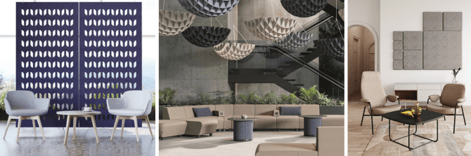 - Akoestische oplossingen: Geluidsabsorberende panelen, scheidingswanden en tapijten helpen om storende geluiden te verminderen en een rustige sfeer te creëren.