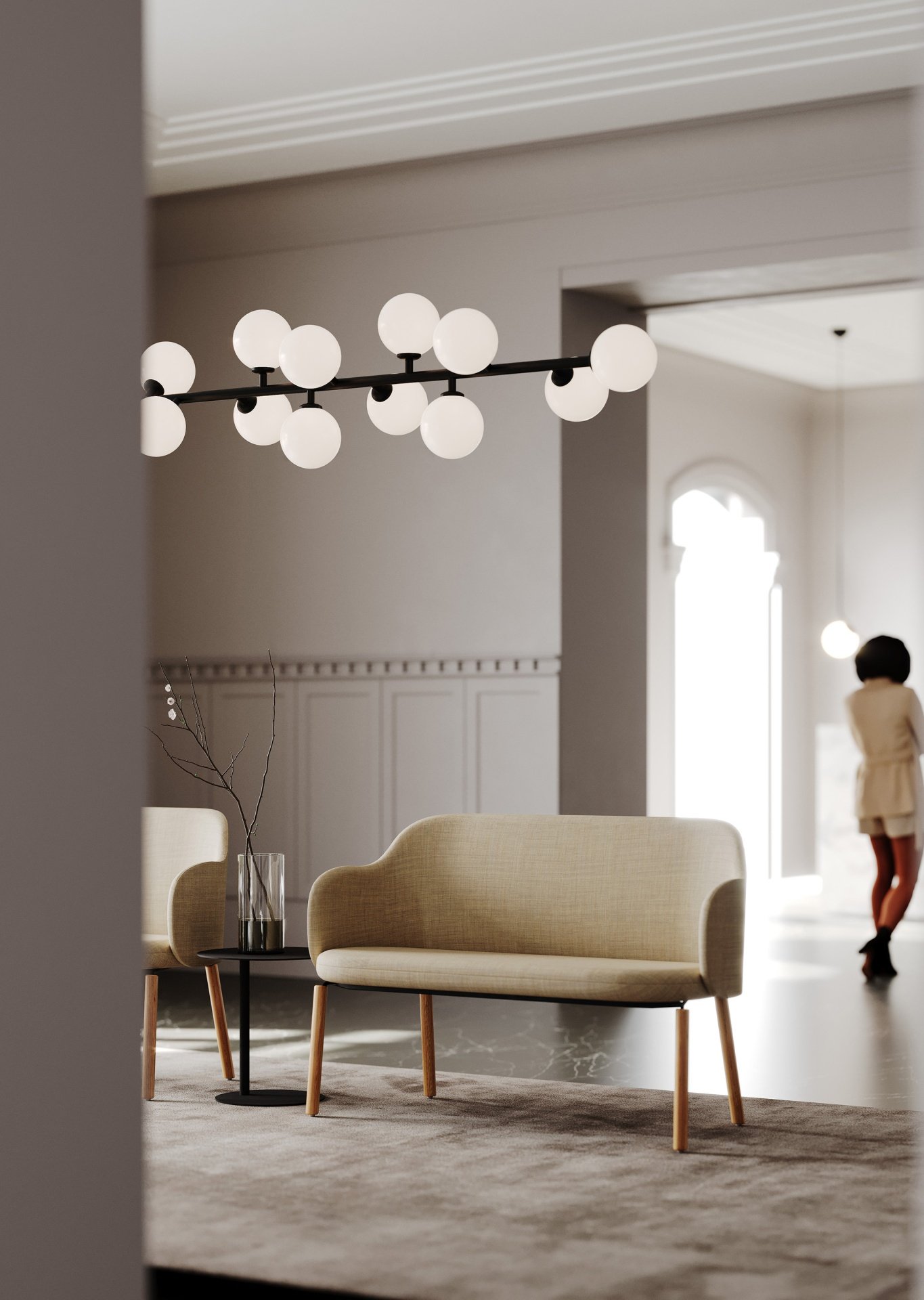 Bank Flos is leverbaar in diverse kleuren en stoffen. De estethische sofa straalt elegantie en verfijning uit, perfect voor moderne werk- en ontspanningsruimtes. Met haar vloeiende lijnen en lichte ontwerp voegt de bank een vleugje klassiek karakter toe aan iedere ruimte. Het gebruik van banken in plaats van stoelen bevordert een informele en uitnodigende sfeer, ideaal voor het creëren van verbinding en interactie. De bank is voorzien van een stevig houten onderstel van massief eiken, met optionele vilten voetjes voor extra bescherming van vloeren. Stijl en comfort komen hier perfect samen voor ontspannen omgevingen.