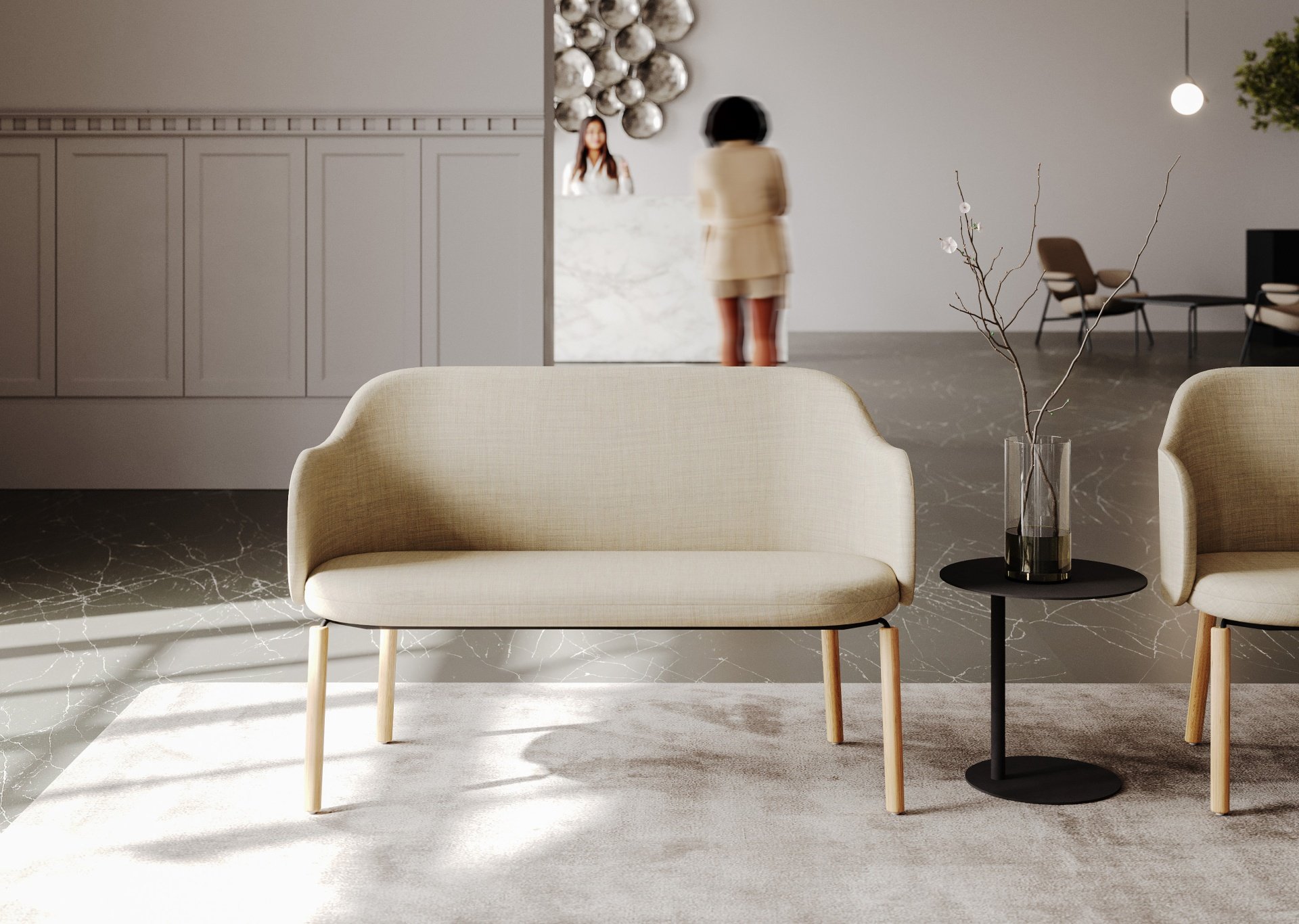 Bank Flos is een comfortabel zitmeubel met een houten 4-poot frame. De bank is 127 cm breed en heeft een vaste zithoogte van 46,5 cm. Door de informele uitstraling creëert Flos een uitnodigend zitmeubel in kantoor, lobby of lounge.