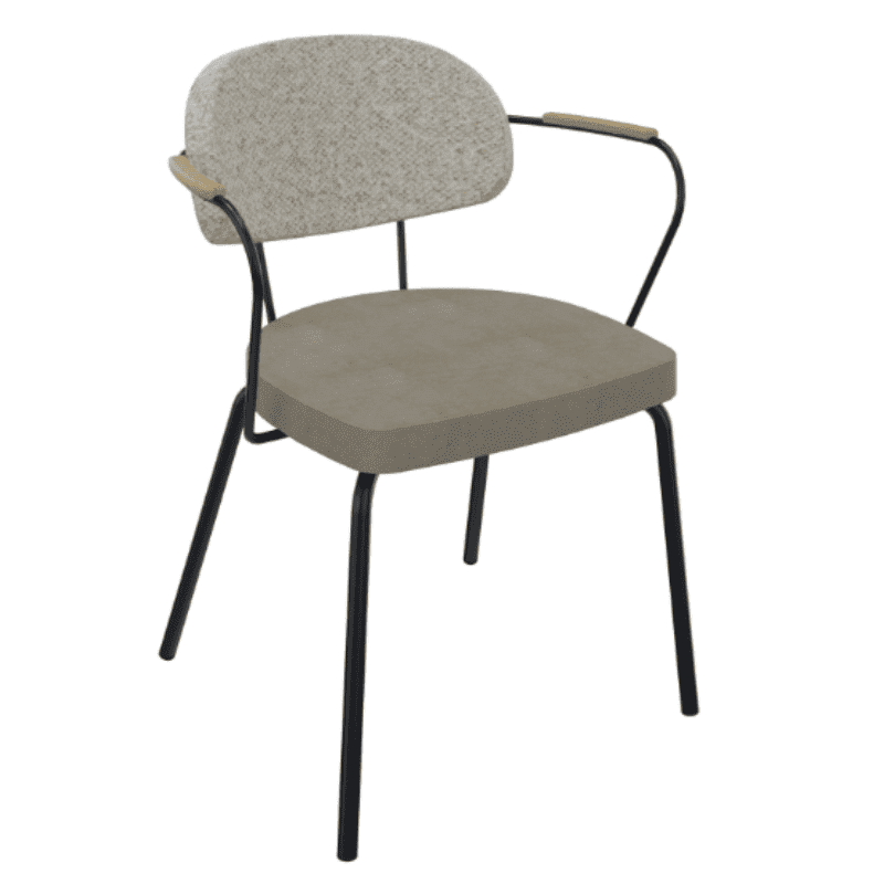 De stoel is voorzien van een solide 4-poot onderstel en is mogelijk met of zonder armleuningen. Als je voor armleuningen kiest is het opdekje standaard van hout in de kleur beuken, afgewerkt met epoxylak.