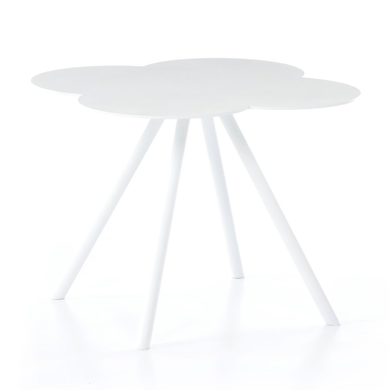 Deze unieke bijzettafel is ontworpen in de vorm van een klavertje vier en is volledig van metaal.