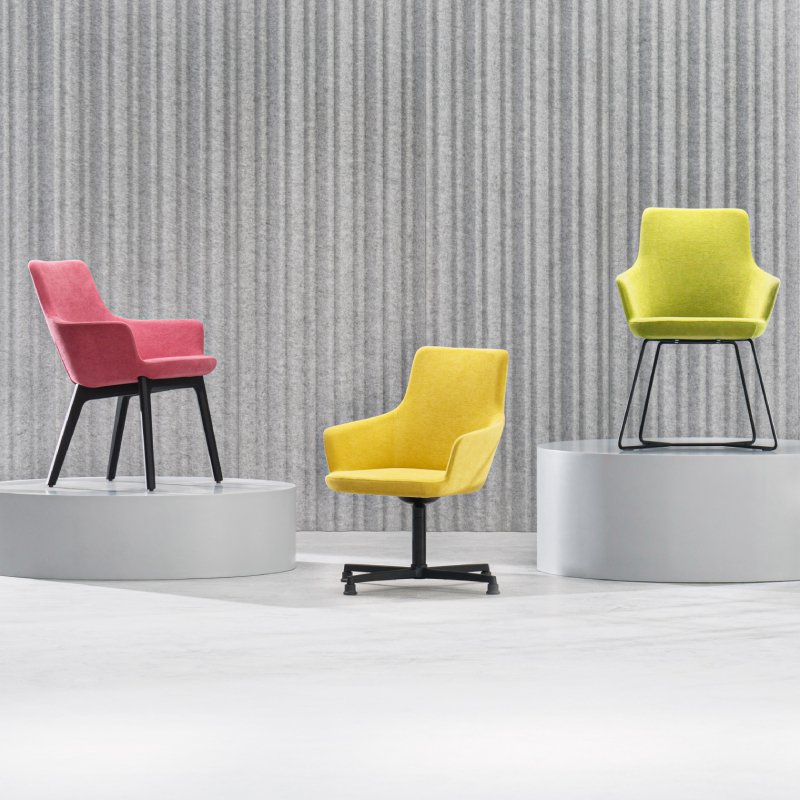 De fauteuil is volledig gestoffeerd in diverse kleuren. De Hendrix loungestoel is mogelijk met verschillende onderstellen welke de stoel een andere uitstraling en functie geven.
