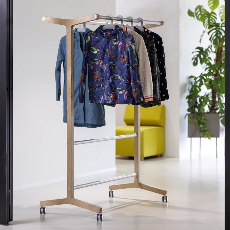 Een nette en opgeruimde garderobe zorgt voor een representatief ontvangst. Verrijdbare kapstok Round20 Wood kunt u hierbij helpen. Eenvoudig te monteren en tevens ideaal in te zetten in tijdelijke garderobe-ruimtes.
