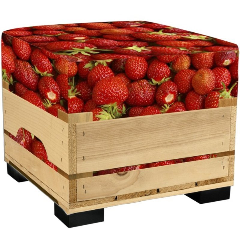 Hocker aardbei is een comfortabele en veelzijdige vierkante poef. De zitting kan prima ingezet worden in de ontvangstruimte, in een kinderhoek of als bijzetpoef. Deze hockers zijn een flexibele en stijlvolle aanvulling van het interieur. Deze leuke poef met print is voorzien van een aardbei foto.