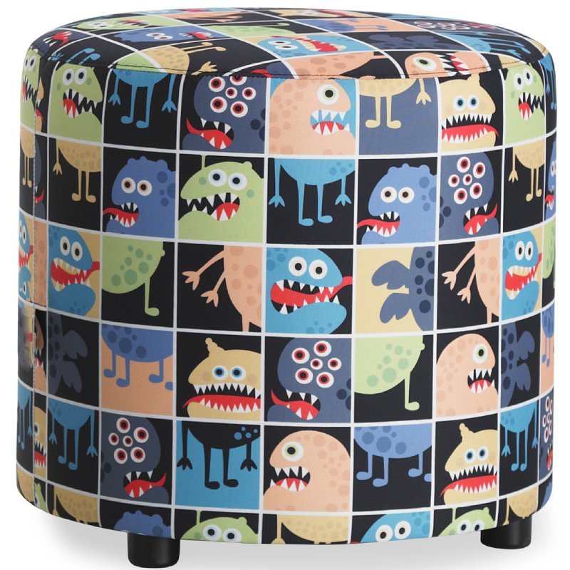 Naast de poef met blauwe korrels print, zijn er ook andere hockers en poefen met print.