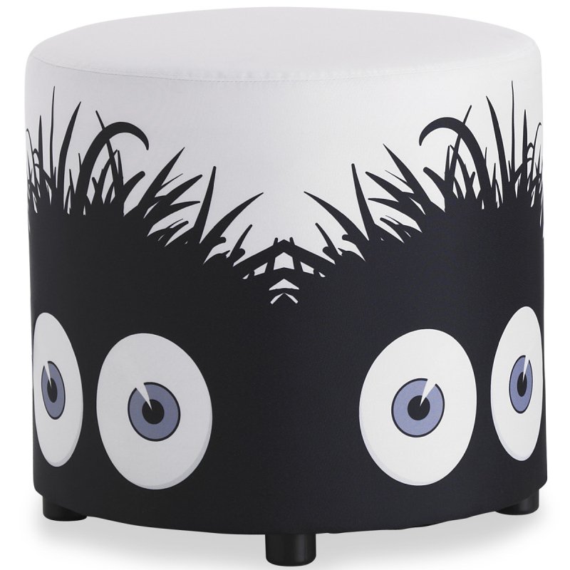 De ronde hocker met print is verkrijgbaar in diverse afmetingen en in verschillende zithoogtes.