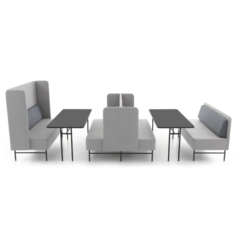 De luxe kantoorbank kan met een lage rug van 90/110cm hoog of als u meer privacy wenst of een extra hoofdsteun, dan is een rugpaneel van 140 cm ook mogelijk. Multi Bench biedt u ook de oplossing om als akoestische bank te fungeren. Door middel van zijpanelen kunt u het geluid beter dempen en privacy creëren voor de gebruiker.