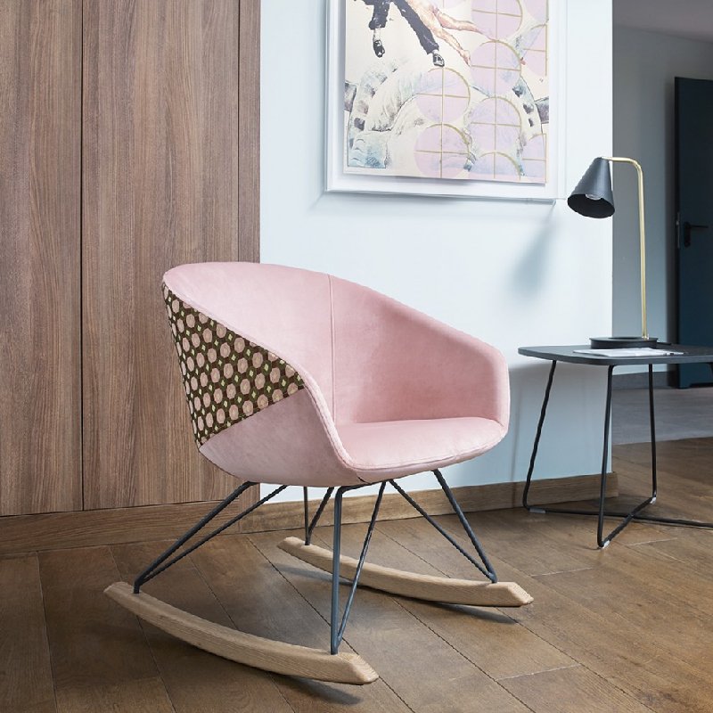 De gestoffeerde schommelstoel is een leuke verschijning die je zelf kunt aanpassen door de combinatie van diverse materialen, keuze uit stofferingen en kleuren. Op deze manier kun je eenvoudig de uitstraling van de schommelstoel bepalen, zodat deze bij het interieur past. De kuipstoel kan zowel op harde als zachte vloeren.