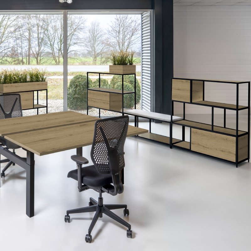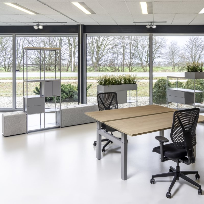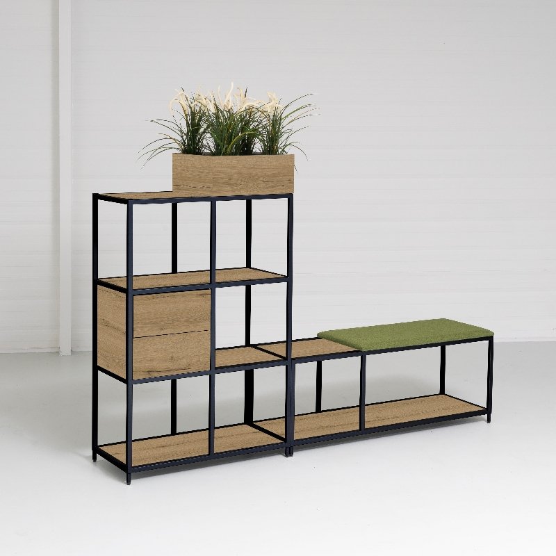 Roomdivider Flexwall 1 zorgt voor voldoende opbergingsruimte, maar kan ook een afscheiding maken in ruimtes.