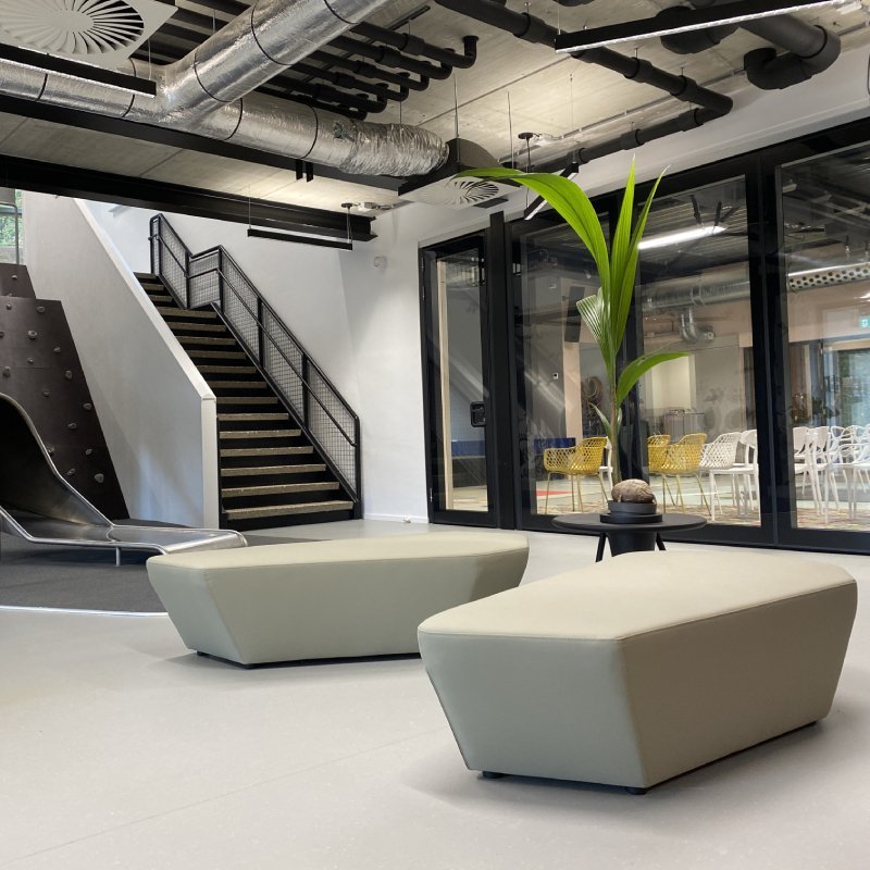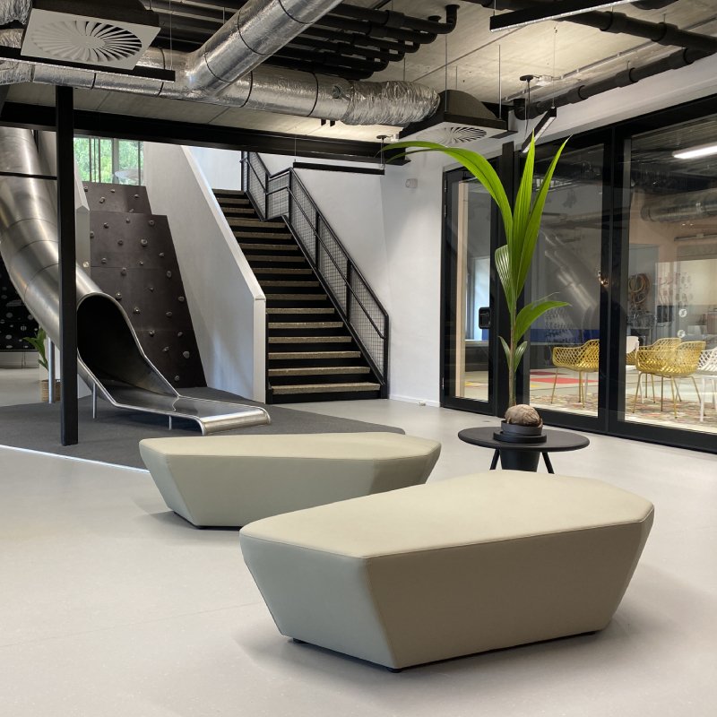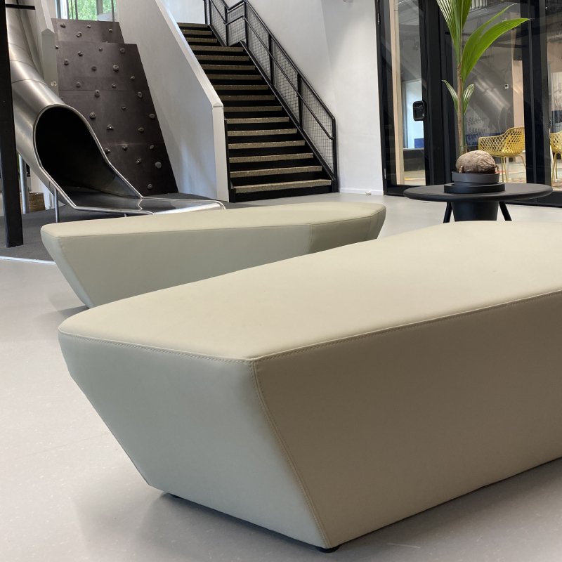 Poef Isley heeft een assymetrisch ontwerp, waardoor de wachtruimte in uw bedrijf gelijk meer dimensie krijgt. Poef Isley voegt aan elke ruimte op kantoor iets extra’s toe.