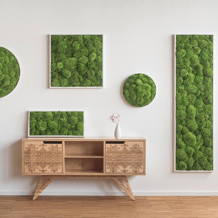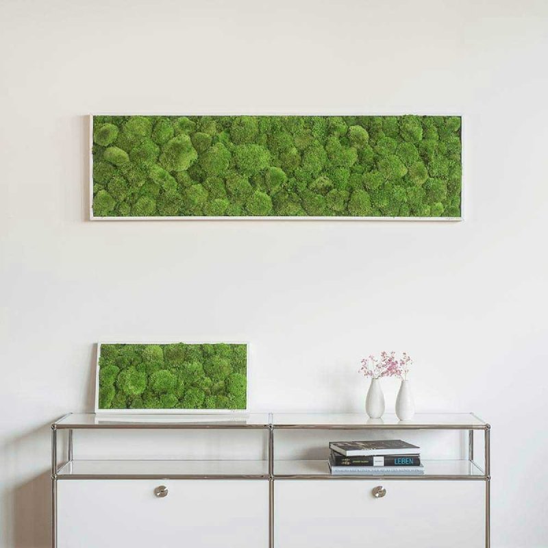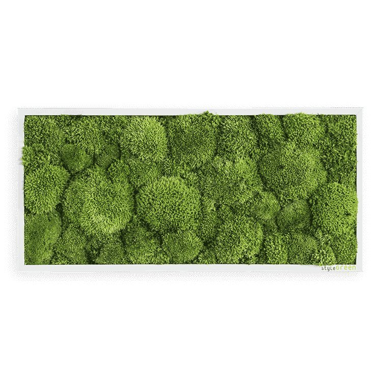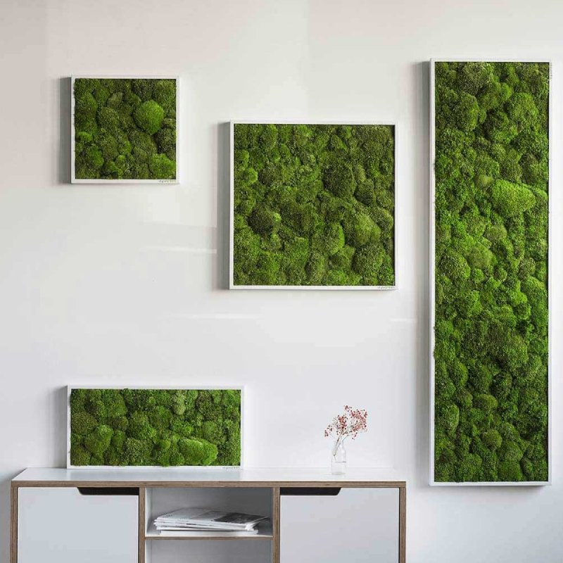 Creëer een verticale tuin met de groene mosschilderijen. Deze tableaus zijn leverbaar in diverse afmetingen en voorzien van bolmos en hebben een natuurlijk 3D effect.