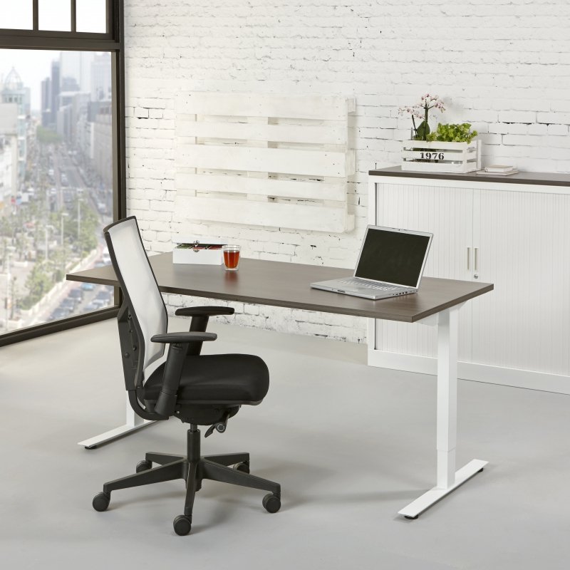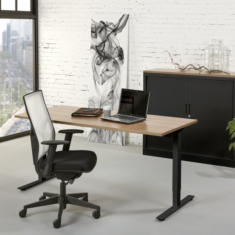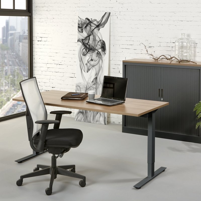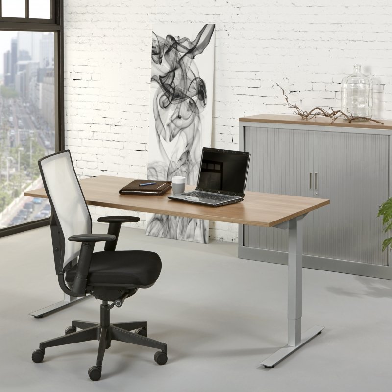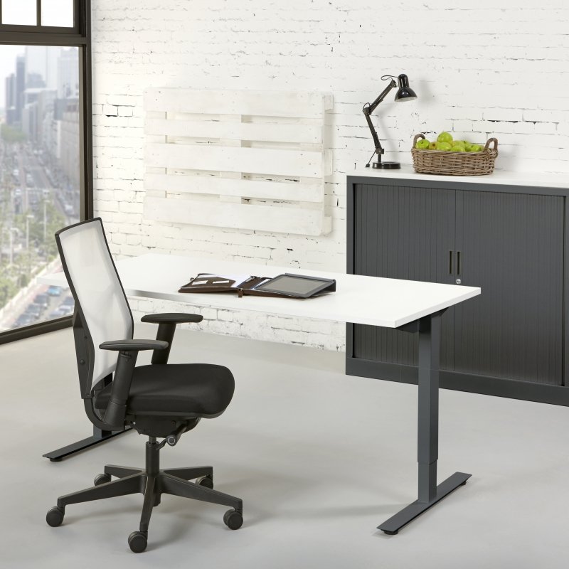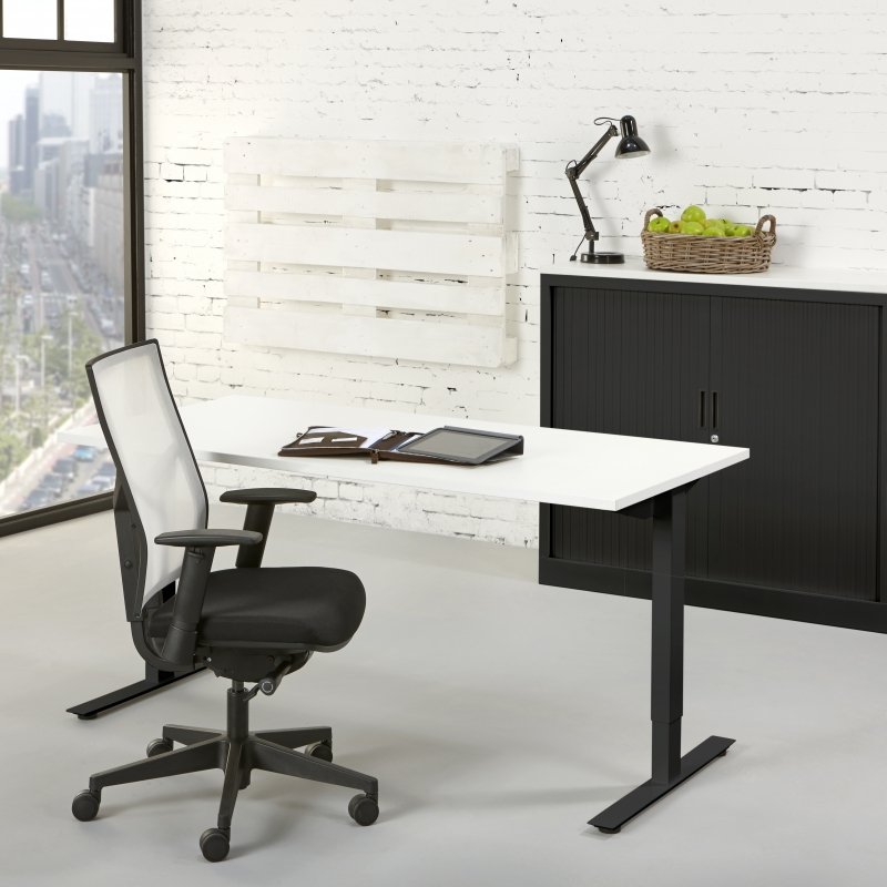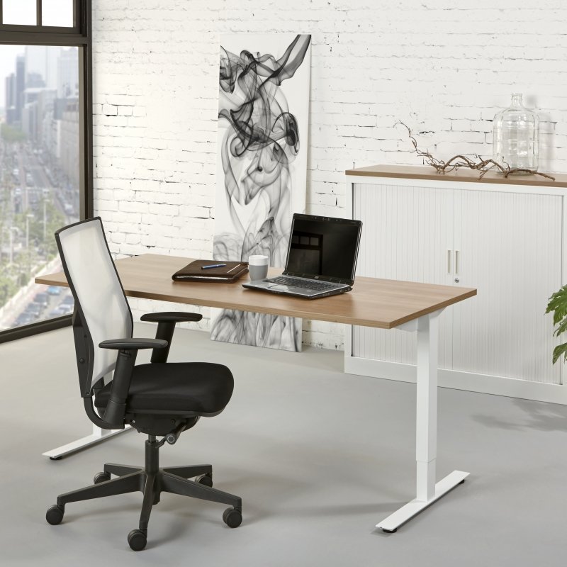 Recht bureau T-poot Tendenz is een goed inbus bureau met een tijdloos design. Het rechte in hoogte instelbaar bureau is voorzien van een 25mm melamine tafelblad dat mogelijk is in diverse bladkleuren. Het onderstel van het bureau is mogelijk in 4 kleuren. Het in hoogte instelbaar bureau kan in ingesteld worden van 62 tot 85cm (standaard hoogte 76cm) met behulp van een inbussleutel.