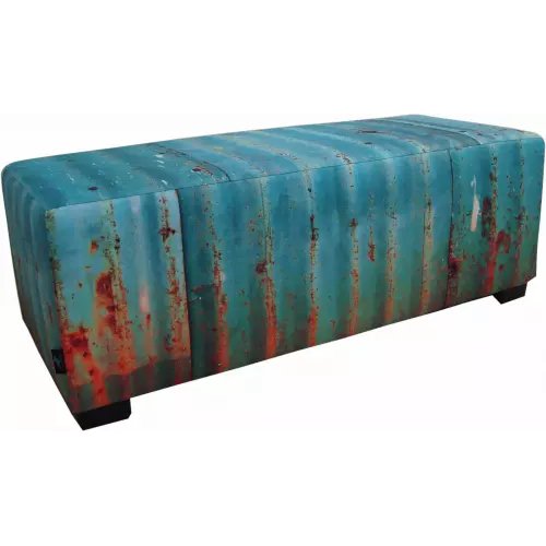 Hocker-zitbank blauw roest is een comfortabele en veelzijdige rechthoekige poef. De zitting kan prima ingezet worden in de ontvangstruimte, in een kinderhoek of als bijzetpoef. Deze hockers zijn een flexibele en stijlvolle aanvulling van het interieur. Deze leuke poef met print is voorzien van een roest foto.