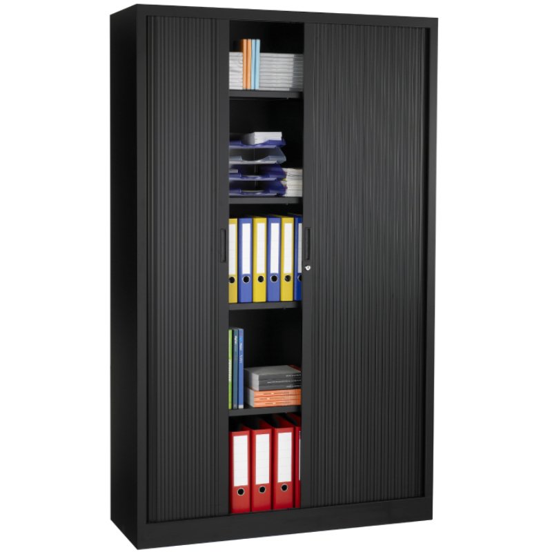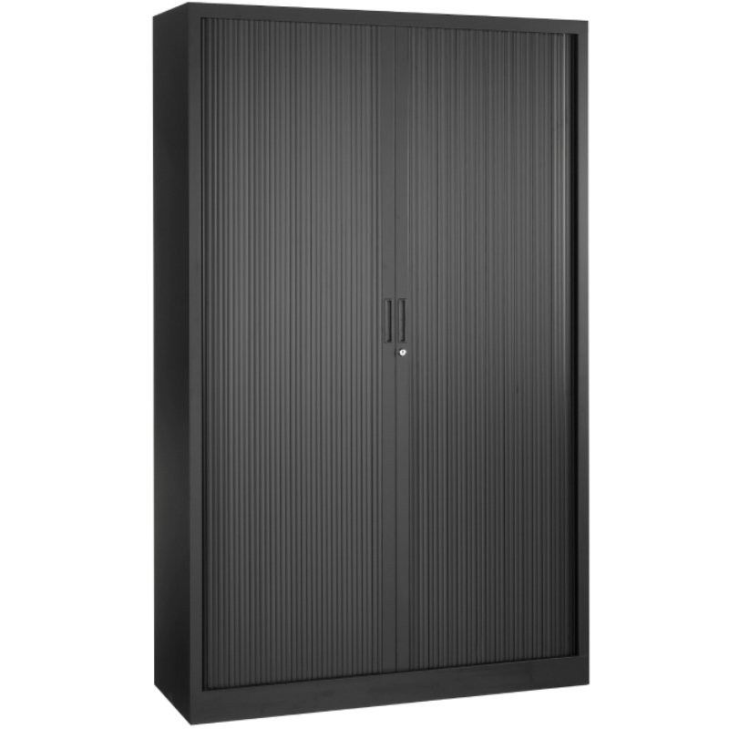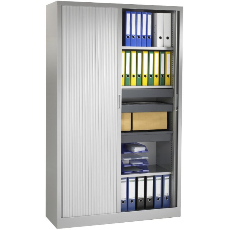 Roldeurkast BE198 is een 198cm hoge kantoorkast met 2 roldeuren. Een handige opbergingsmogelijkheid voor op de werkvloer. De hoge roldeurkast is voorzien van 4 laterale legborden waar u documenten en mappen op kunt bergen en hangmappen onder kunt hangen. Deze hebben dezelfde kleur als de kast zelf. De roldeurkast is leverbaar in 5 diverse kleuren. De deuren van de roldeurkast zijn van kunststof conform de brandklasse M1 (niet brandbaar).