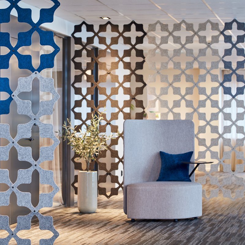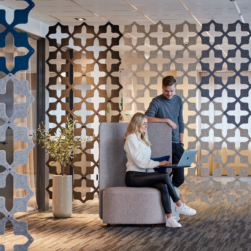 De RomboSeat biedt een flexibele, comfortabele maar speelse zitting. Dit maakt de gestoffeerde stoel geschikt voor diverse ruimtes. Op de moderne werkvloer, in schoolinrichtingen of in open (ontvangst-)ruimtes. De stoel is mogelijk in diverse stofferingen en kleuren. Als u voor een scherm (scheidingswand) kiest, is deze standaard in dezelfde kleur als de stoffering van de stoel.