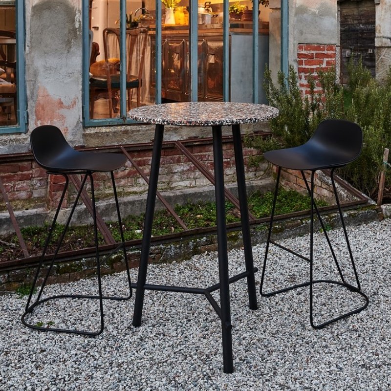 Ronde statafel Record is een design tafel van 107cm hoog dat stijl en veelzijdigheid combineert. De kruisende lijnen van het zwarte onderstel geeft de tafel een elegante en gedetailleerde uitstraling.