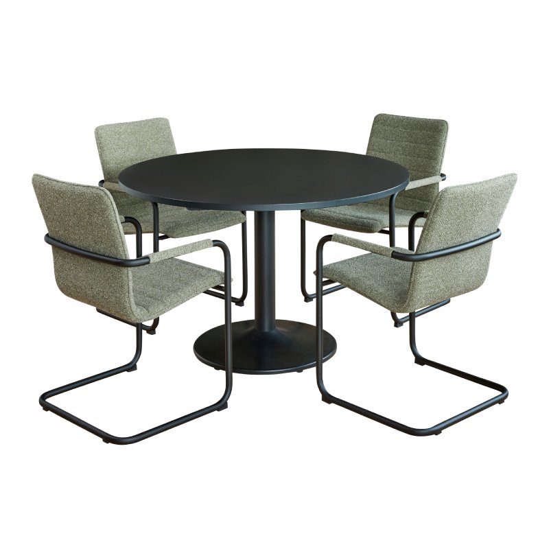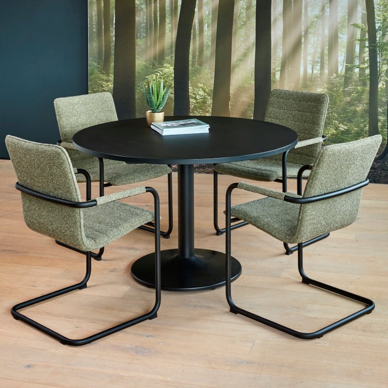 De tafel heeft een diameter van 120cm en is voorzien van een 2mm dik PVC stootrand. Naast de ronde vergadertafel zijn er nog meer vergadertafels en bureaus uit de Teezz collectie leverbaar.