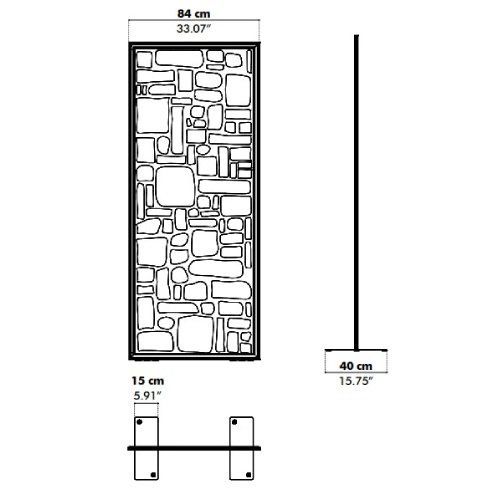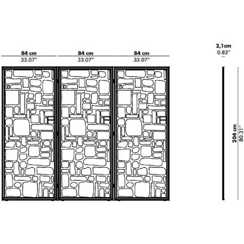 | Afmeting | Enkel scherm: 84cm breed x 2,1cm diep x 204cm hoog, voet: 15cm breed x 40cm diep Drie schermen: 252cm breed x 2,1 cm diep x 204cm hoog |