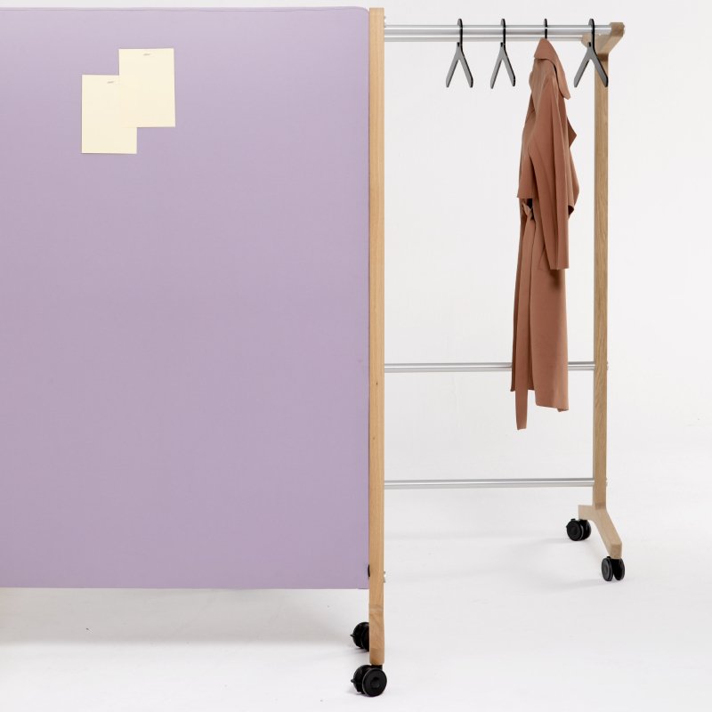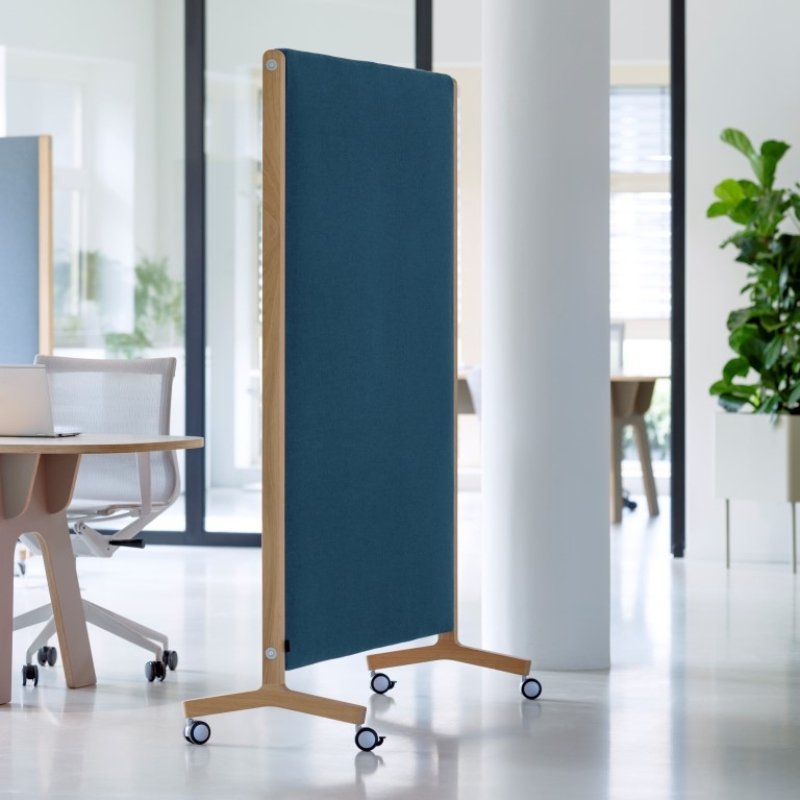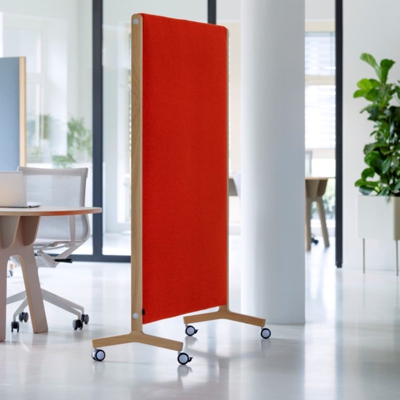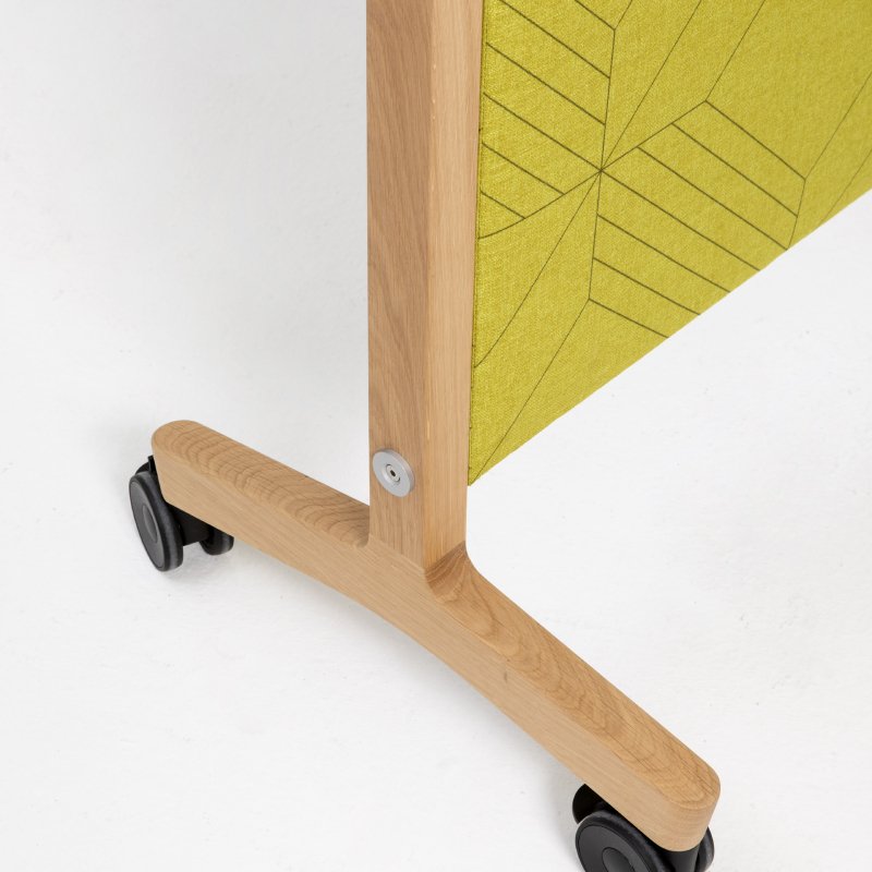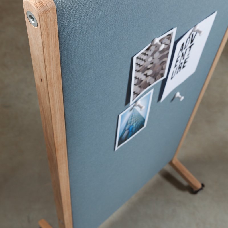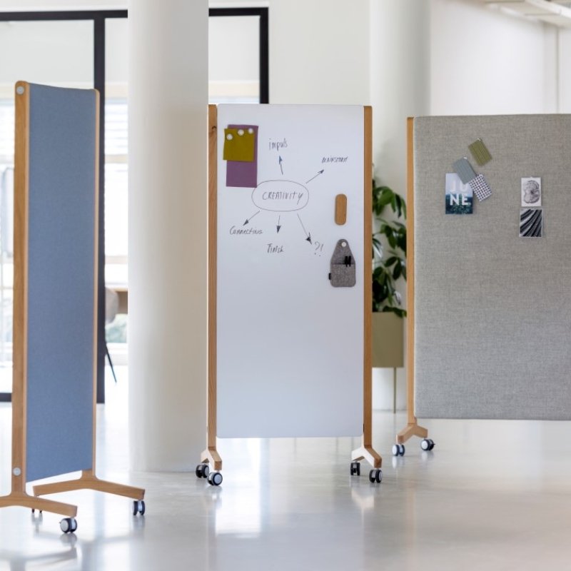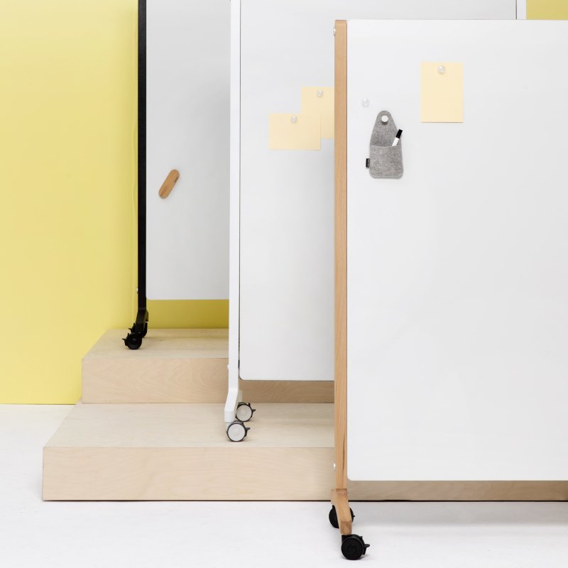 Het paneel op wielen is mogelijk in diverse stoffen en kleuren en populair in zowel de bedrijfsomgeving als op het onderwijs.