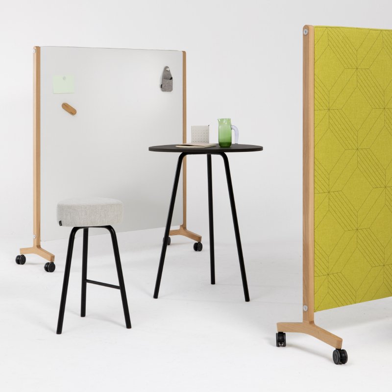 Round20 is een verrijdbaar akoestisch gestoffeerd paneel met stalen of eiken houten frame. Deze bijzondere scheidingswand is ook met een whiteboard uit te voeren. Ideaal om een afscheiding te creëren in een grote (kantoor) ruimte en verbeterd tegelijkertijd de akoestiek.