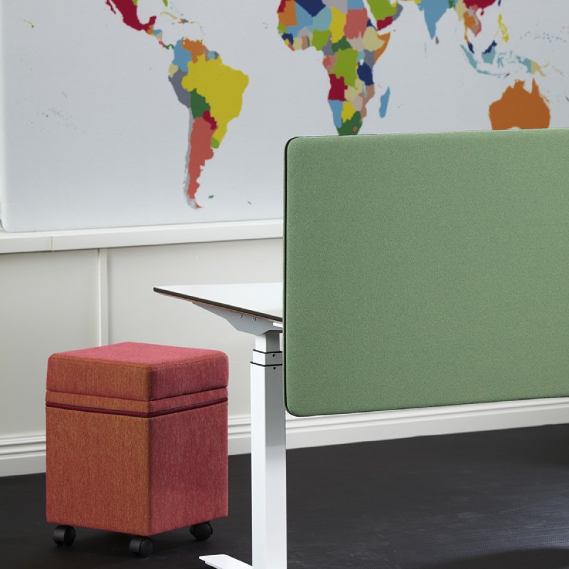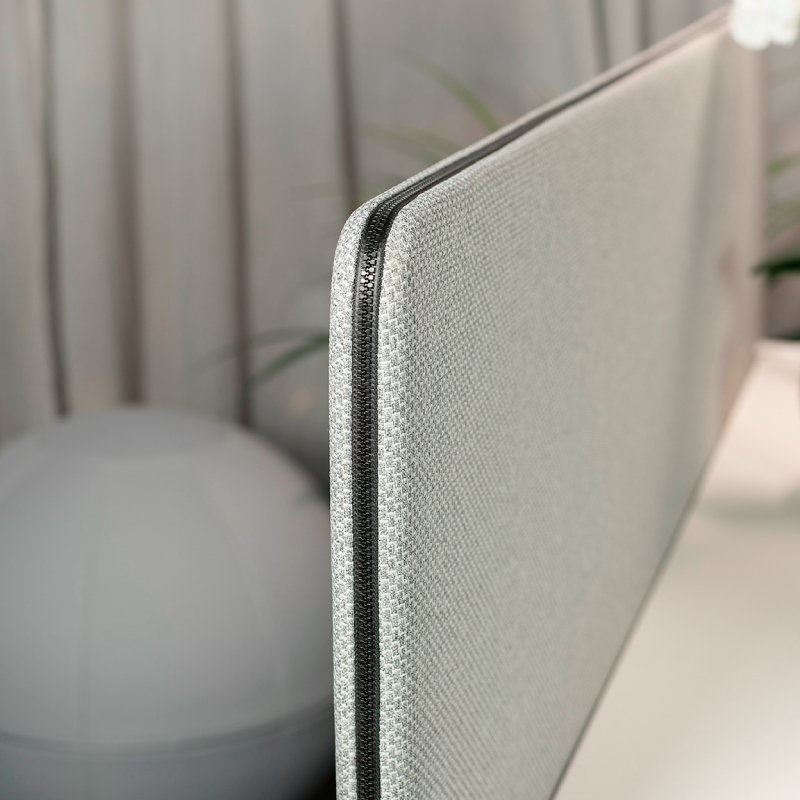 Wilt u de akoestiek in uw kantoor verbeteren? Dit akoestisch scherm is ontworpen om geluid maximaal te absorberen. De scheidingswand heeft een houten frame die gevuld is met absorberend materiaal en wordt gestoffeerd met een met schuim gelamineerde stof in kleur naar keuze.