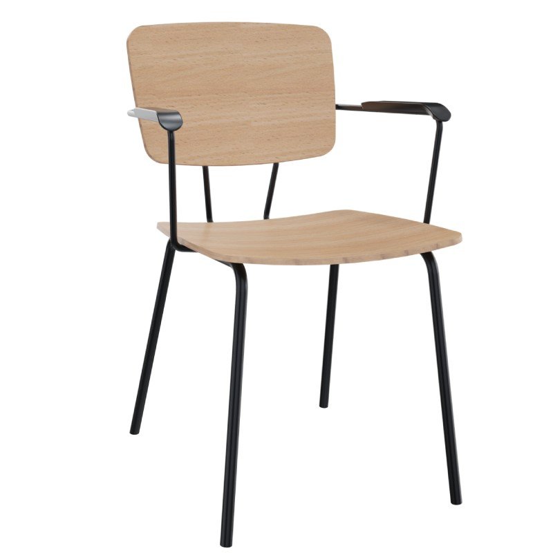 Dit model is voorzien van een solide 4-poot onderstel en is mogelijk met of zonder armleuningen. Als u voor armleuningen kiest is het opdekje standaard van hout in zwarte kleur.De zitting en rug zijn van hout of laminaat in diverse kleuren. Zo kunt u de look van de zitmeubel helemaal zelf bepalen.