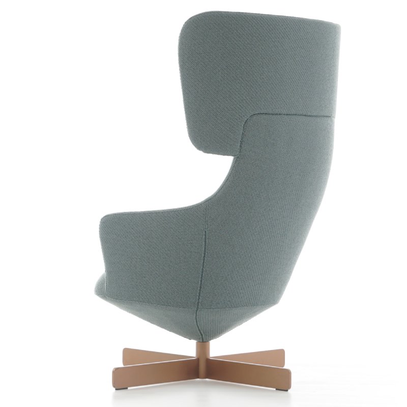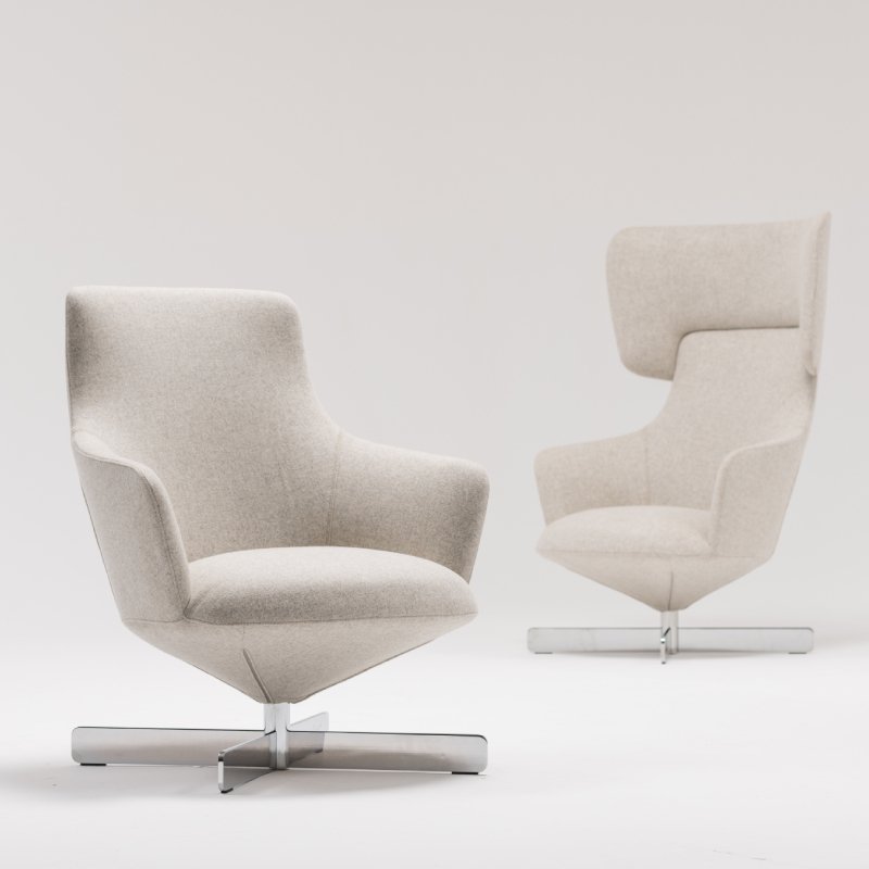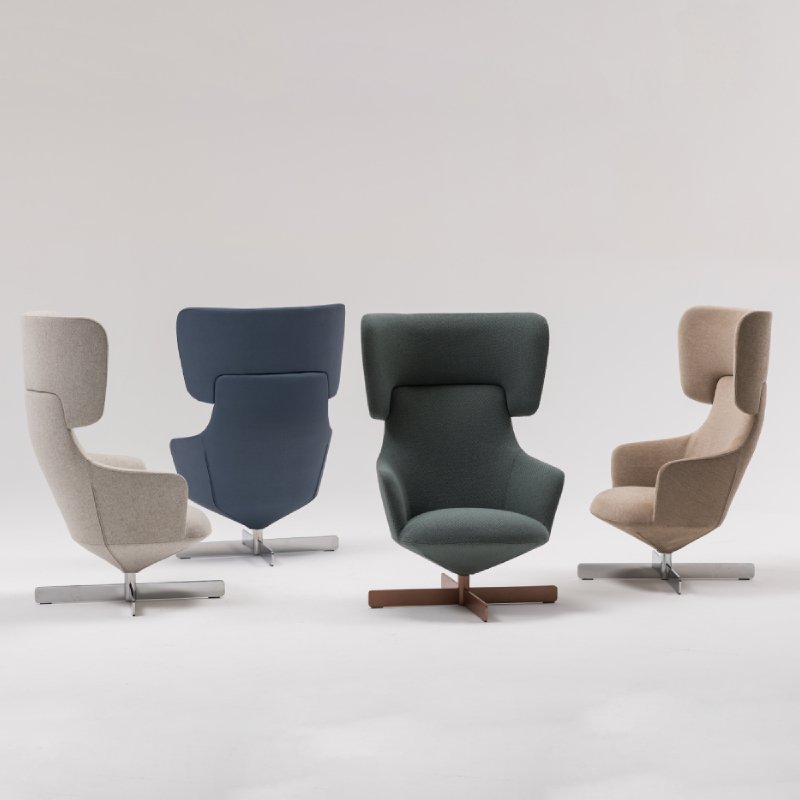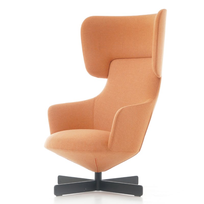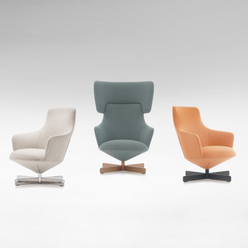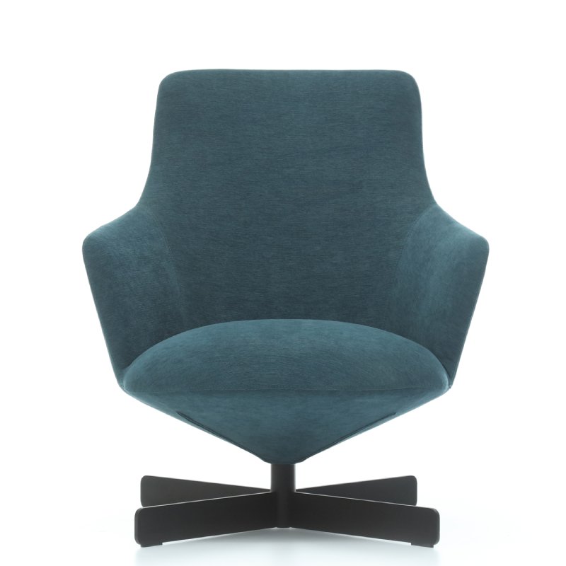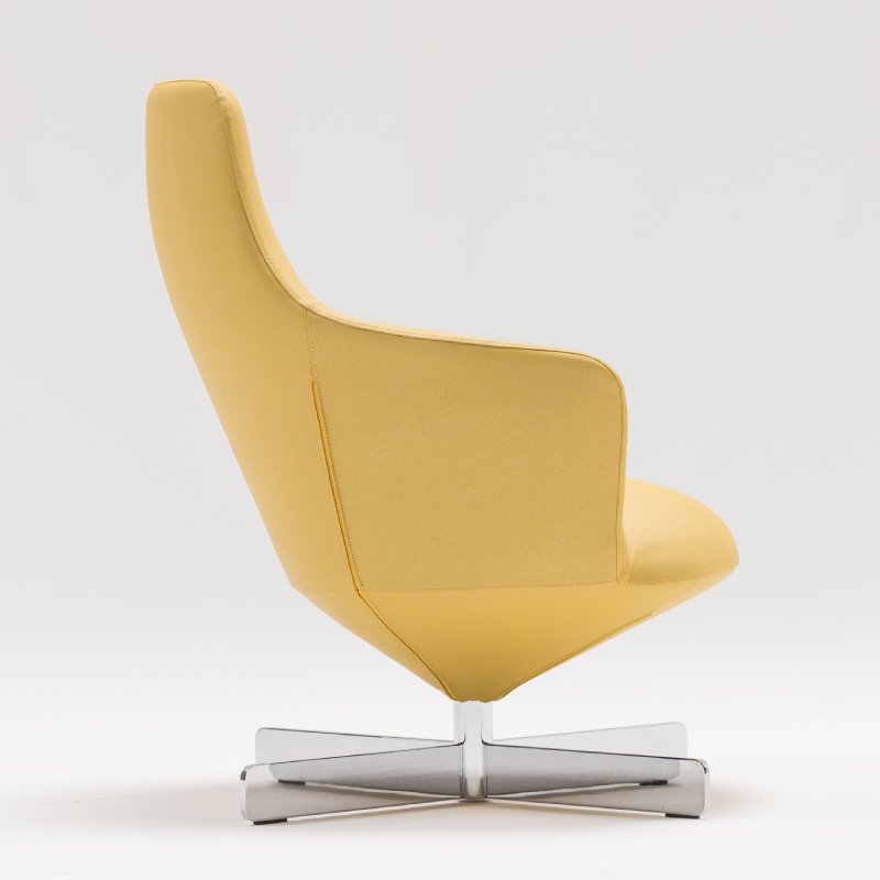 De fauteuil is volledig gestoffeerd in diverse kleuren. De Hendrix loungestoel is leverbaar met een 4 teens draaibare kruisvoet.