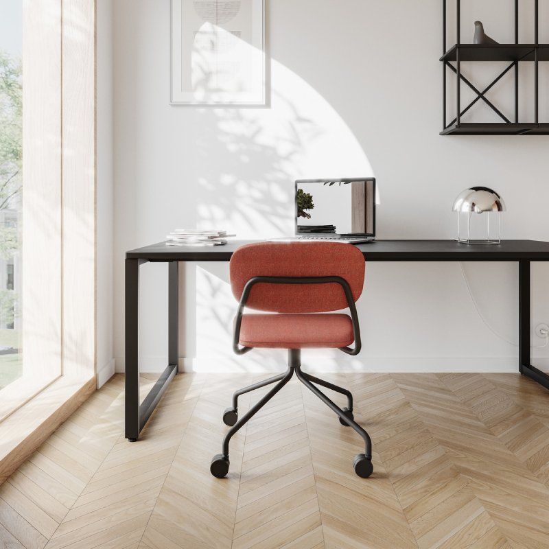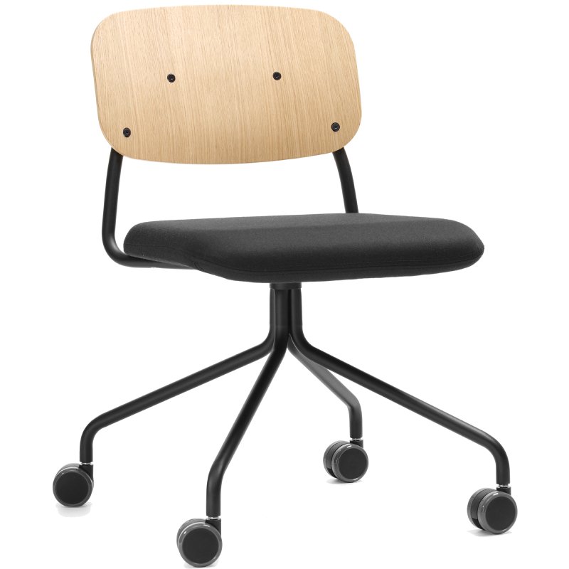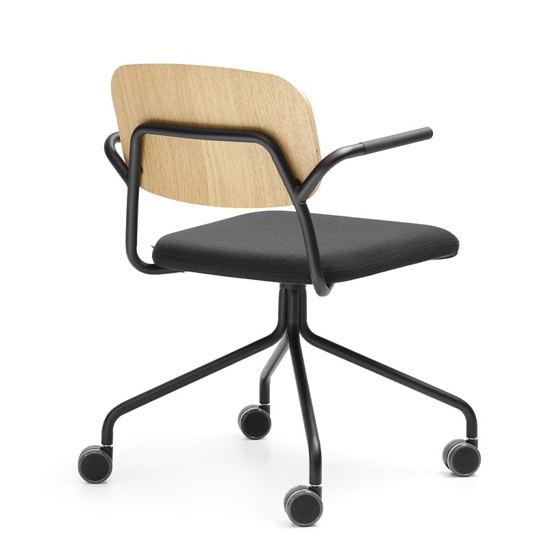 Kies de stoel met een eiken fineer rugleuning of volledig gestoffeerd. Bepaal de kleuren en geef de kantoorstoel een unieke uitstraling.