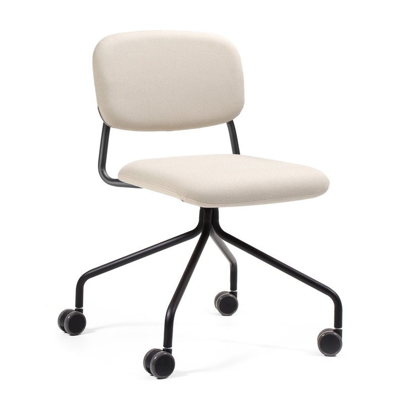 Deze comfortabele Hens stoel heeft een Scandinavische look en tijdloze uitstraling. De moderne stoel op wielen heeft een metalen frame dat doorloopt naar de achterkant van de rugleuning.