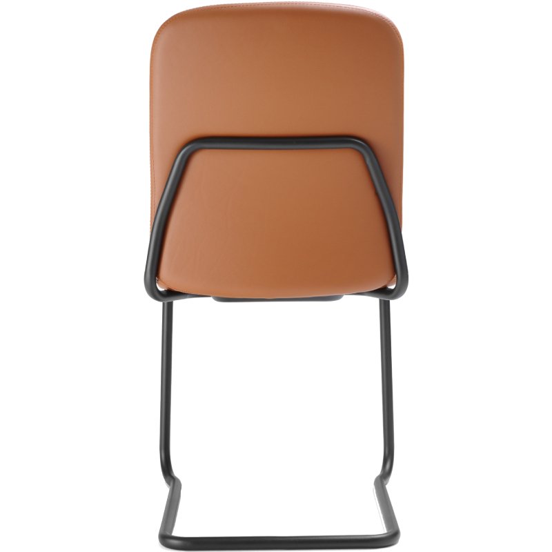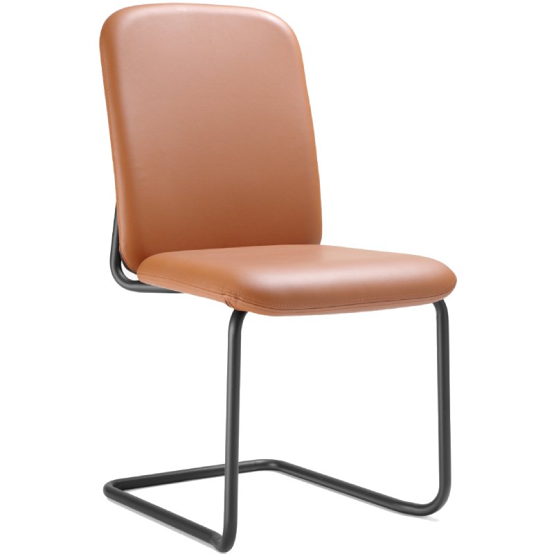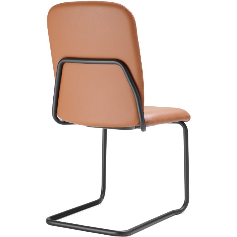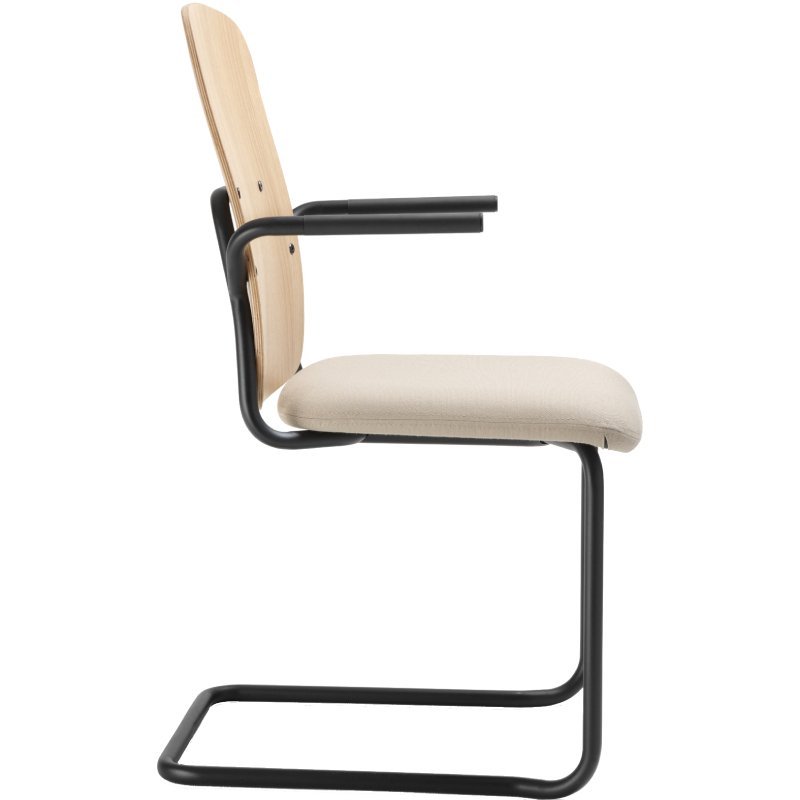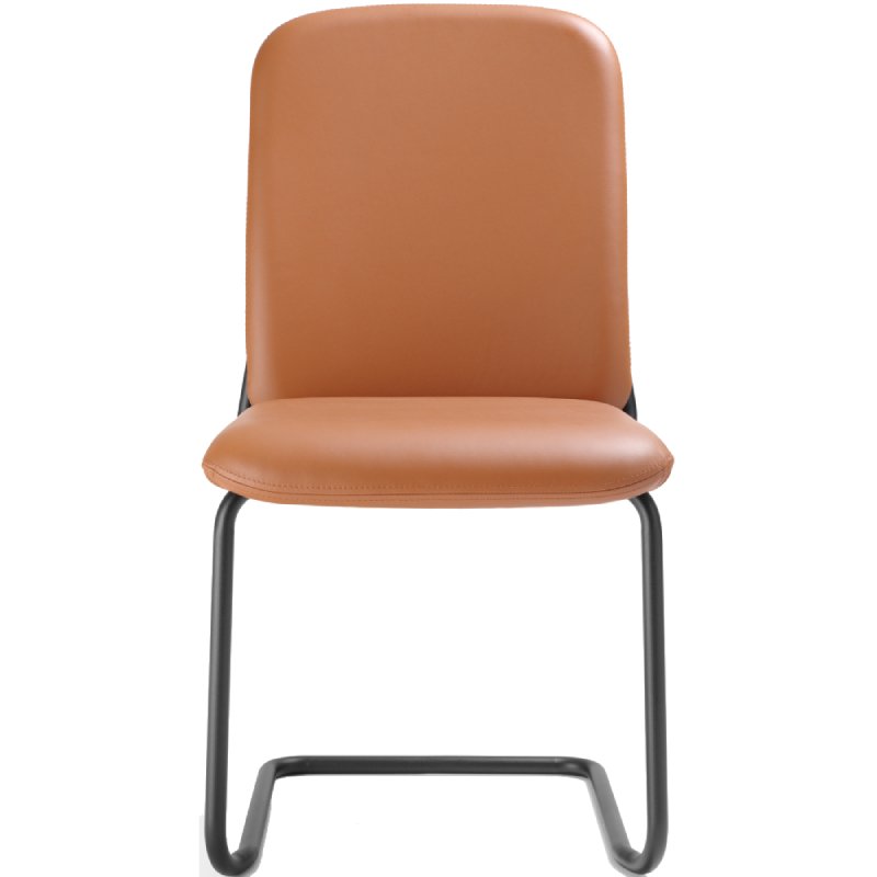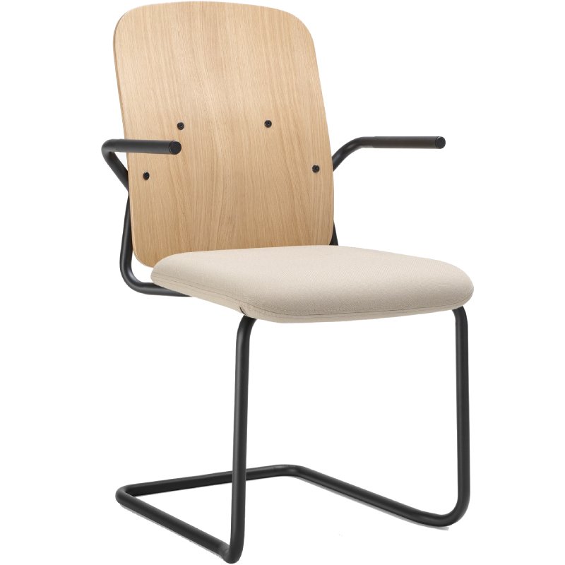 Stoel Hens met gestoffeerde zitschaal heeft een Scandinavische en tijdloze uitstraling. De stevige stoel heeft een stalen sledeframe dat doorloopt naar de achterkant van de rugleuning.