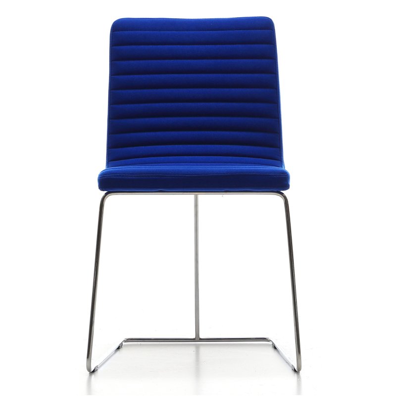 De elegante en populaire stoel is ideaal voor kantoor, kantine, seminar- en conferentiezalen. Het unieke en stevige sledeframe is leverbaar in verschillende kleuren.